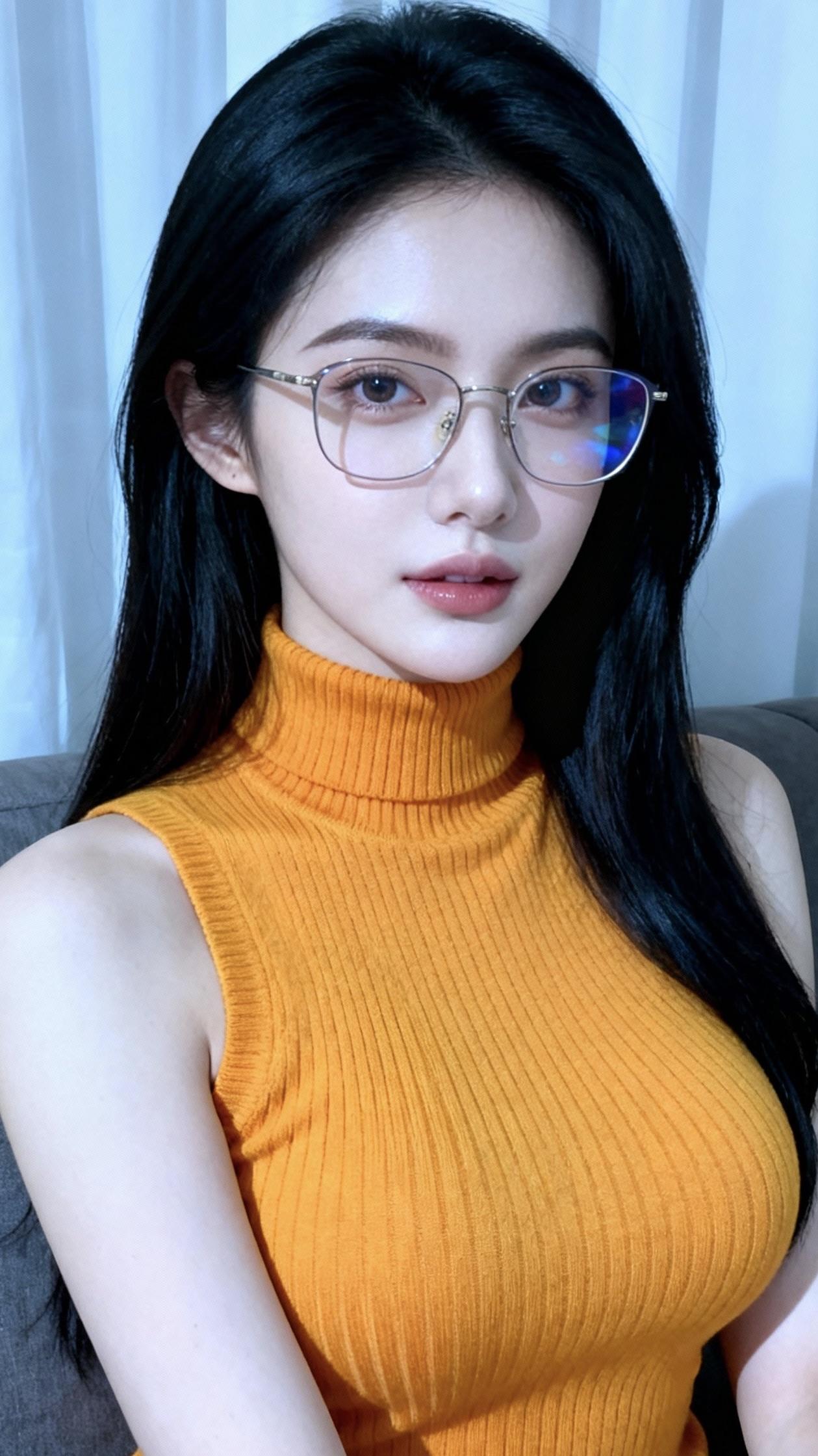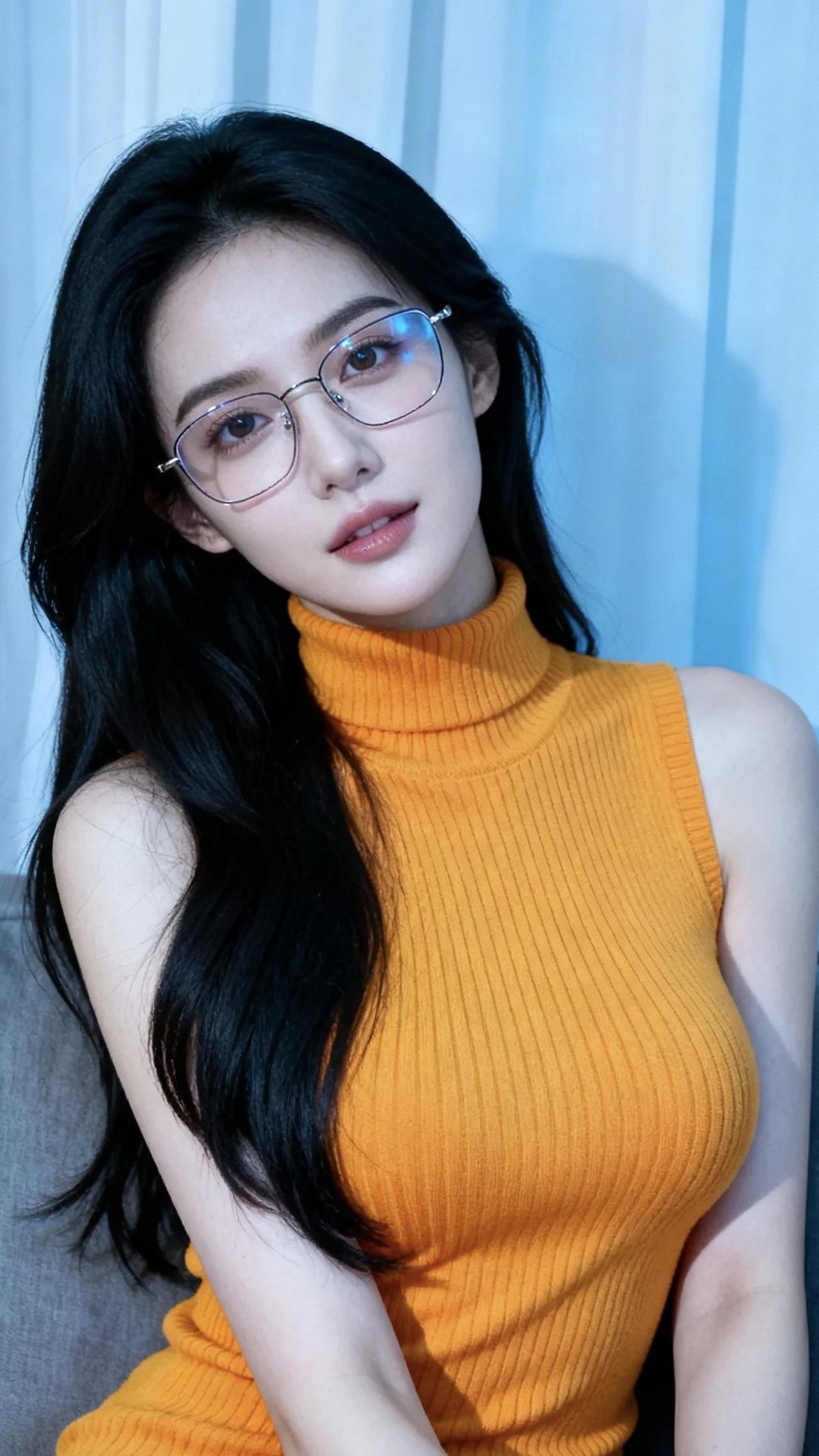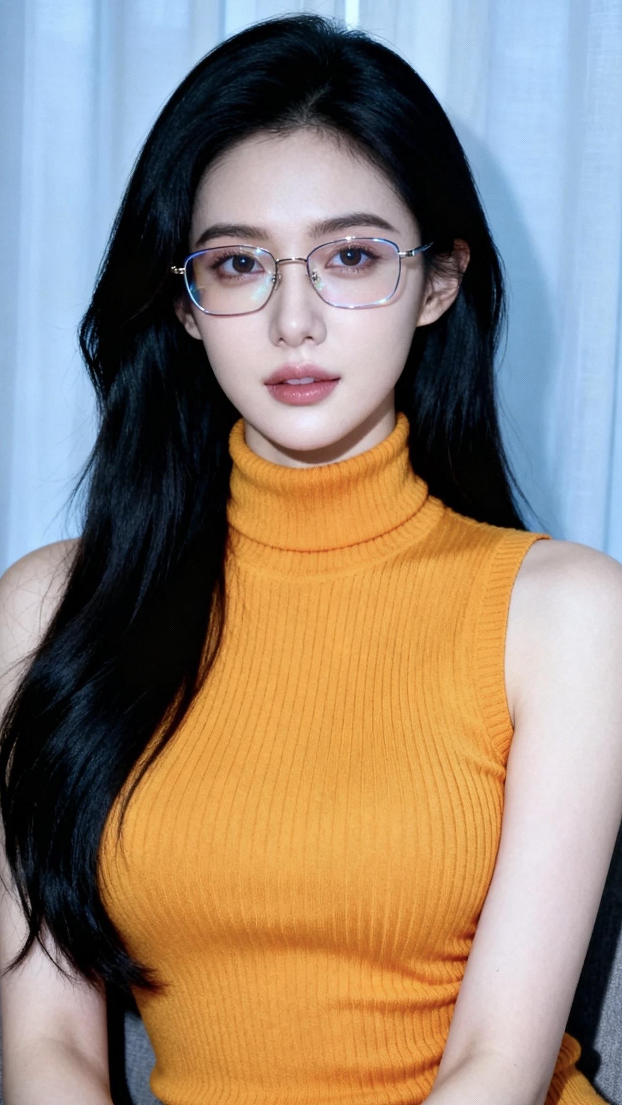 “气质就是迷人”,你认可吗优雅黑发+复古眼镜,橙色高领毛衣,时尚又迷人!