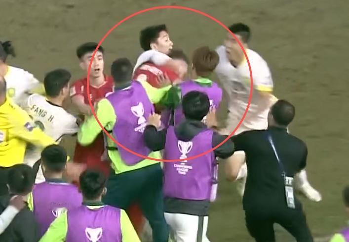 大规模冲突!王刚与河内球员肢体冲突,曹永竞恶劣动作染红。 11月27日 亚冠2级国安客战1-2遭河内逆转,提前一轮出局!比赛补时阶段,王刚与河内球员肢体冲突,两队爆发大规模冲突,曹永竞因“环抱”吃到红牌