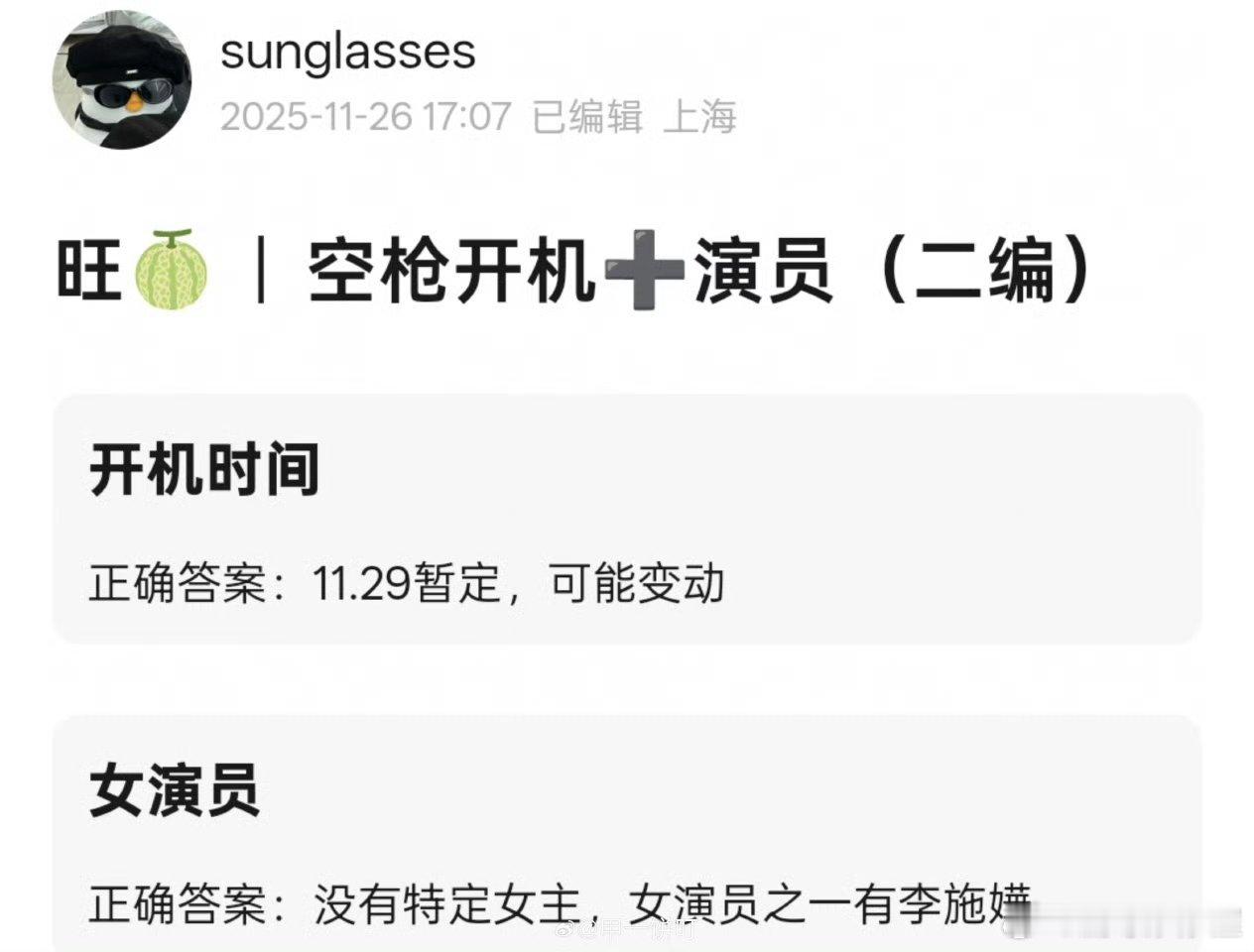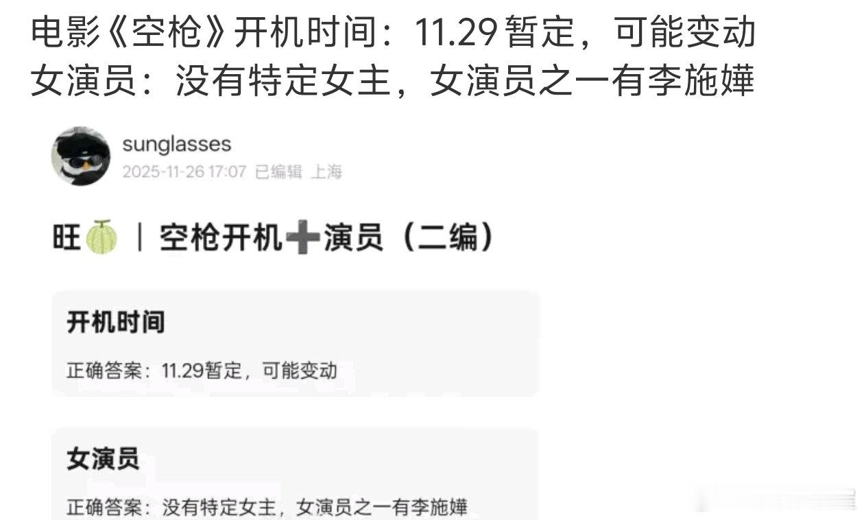 电影《空枪》暂定11.29开机,没有特定女主,据说李施嬅会进组哎!