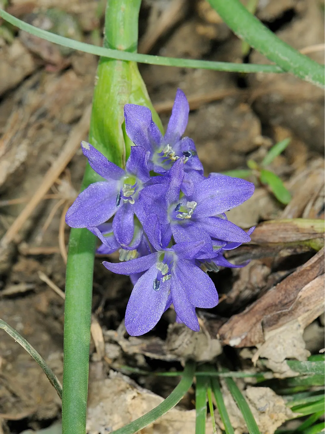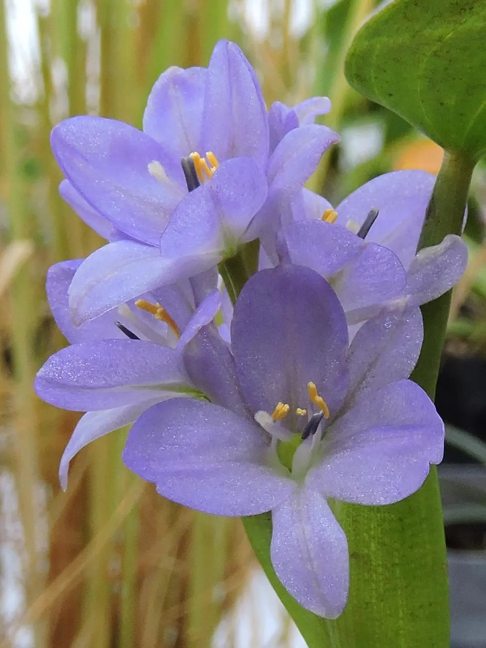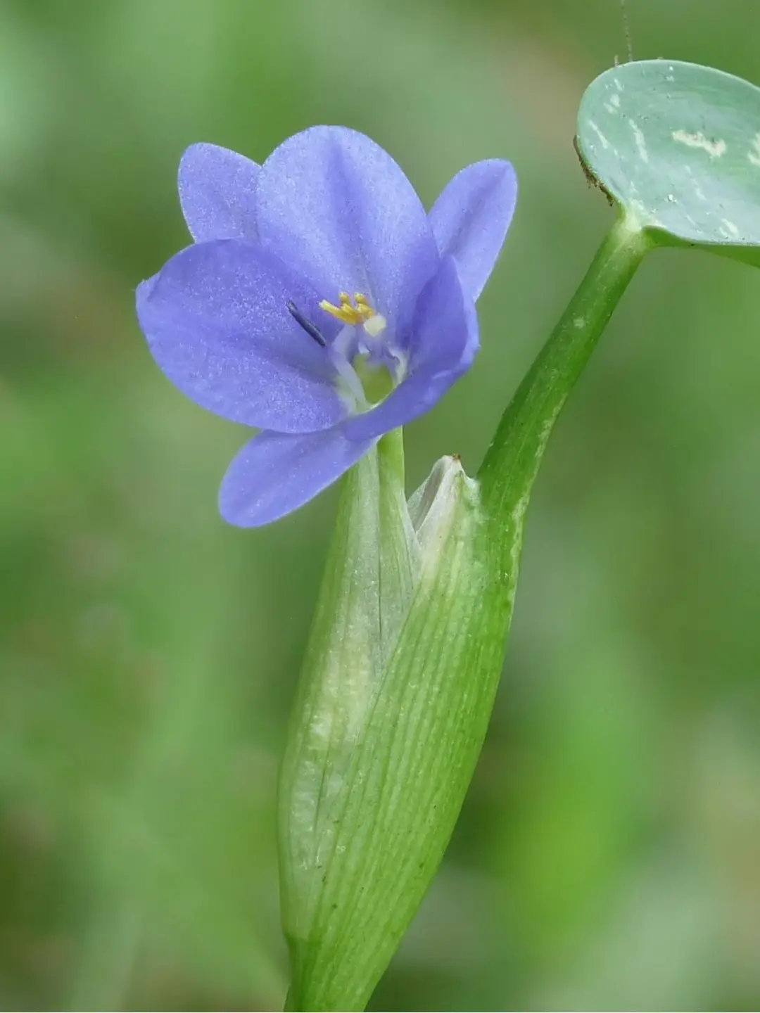 鸭舌草不开花时并不起眼,油亮油亮的心形叶子还算可爱;一旦开花,你或许会叹服它的美丽,六瓣小巧的花瓣是少见的蓝紫色,嫩黄的花蕊更是画龙点睛。如果你观察更仔细一点,就能看见它6枚雄蕊中只有5枚是黄色,剩下一枚是深紫色的。