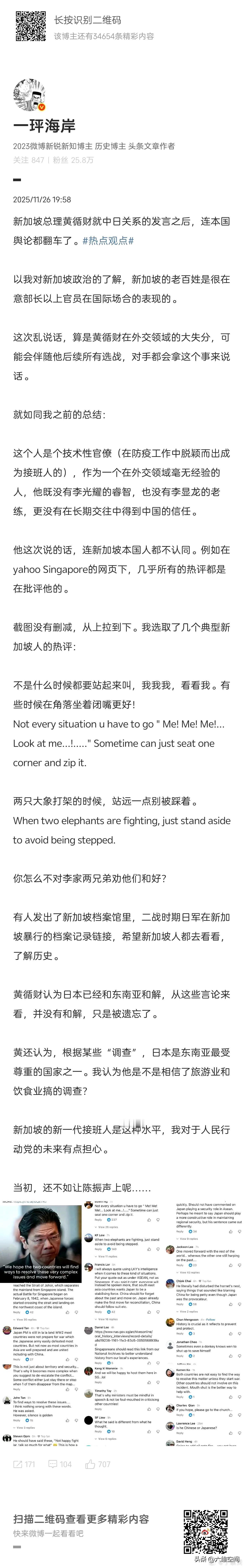 黄循财挺日本的发言在新加坡国内引发了反噬了,黄循财自己不读历史,以为新加坡人也不读历史吗?731部队的东南亚分部的中心就在新加坡,新加坡人怎么可能会和日本和解呢?可是黄循财这次力挺日本,完全可以看出他可能有厉害专业才能,但在管理新加坡的能力上,绝对是不合格的,新加坡人现在都要批判黄循财的发言,很可能会成为他以后从政的污点,竞争对手会拿这个污点来做文章的,不过也是他自己活该,说了没有经过脑袋的话!