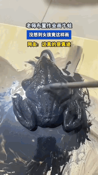 太有头脑了!江苏小女孩为了完成画牛蛙的作业,竟然把活牛蛙涂满墨汁拓印,成品惊艳全网,这操作简直绝了! 妈妈本来还愁自己没绘画天赋指导不了,花10块钱买了只活牛蛙让孩子照着画,没想到女儿直接“不走寻常路”。用墨汁涂满牛蛙全身,往白纸上一按,再用毛笔勾勒细节,一幅栩栩如生的牛蛙图就出来了,连爸妈都看呆了。 有网友调侃画牛怎么办,其实这根本不是偷懒,而是孩子超强创造力的体现。牛蛙的身体结构天生适合拓印,小女孩能发现这一点,说明她观察仔细、善于思考,这种“跳出框架”的思维比画得好不好更重要。 现在很多孩子做作业都墨守成规,缺乏这种灵活变通的能力。这个小女孩用最简单直接的方法完成了任务,不仅效果好,还锻炼了动手能力和想象力。这才是真正的“方法总比困难多”! 你觉得这个小女孩的做法值得点赞吗?如果是你,会怎么教孩子画牛蛙呢?