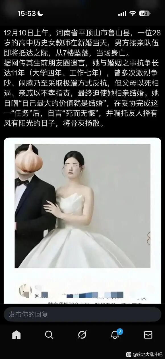 女教师被逼婚跳楼,喜事变丧事女教师新婚当天跳楼身亡,遗书痛诉父母逼婚,反抗11年最后还是输了。中外双标?牛肉面出国变牛肉