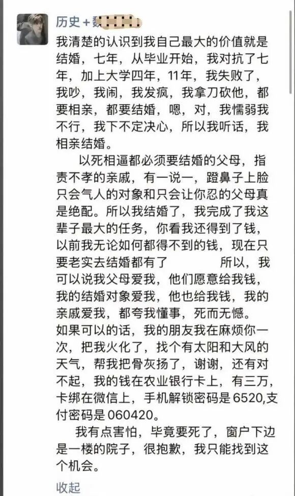 女教师新婚当天跳楼身亡,遗书痛诉父母逼婚,反抗11年最后还是输了。