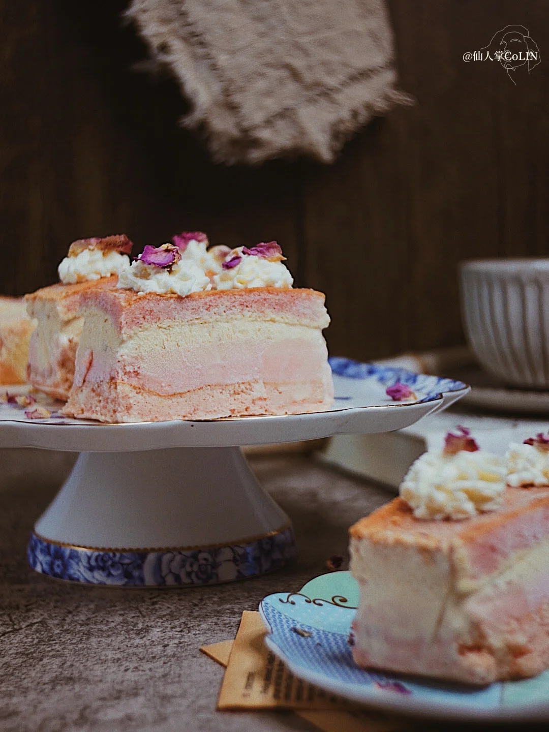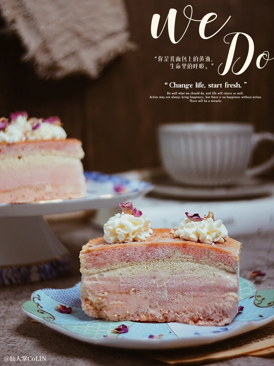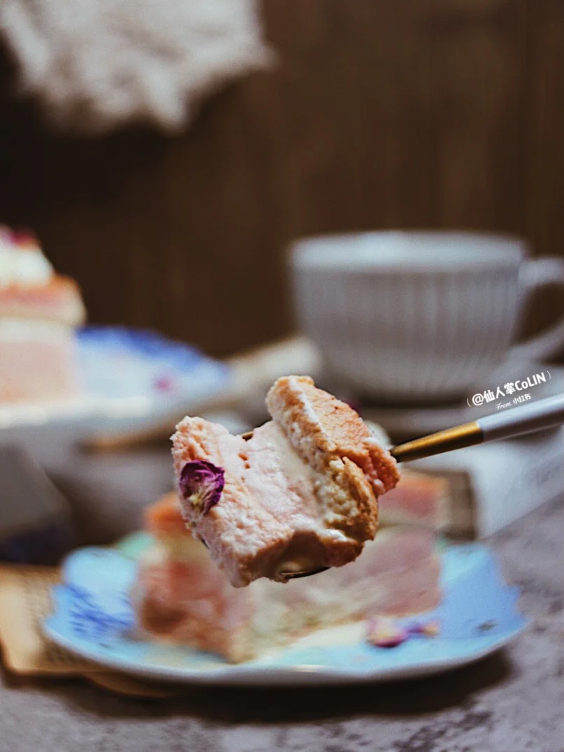🌀这个蛋糕需要放冰箱冷冻,吃起来冰凉甜美,颜色粉嫩虽然足足有4层,但是操作简单,也hin适合新手[萌萌哒R]