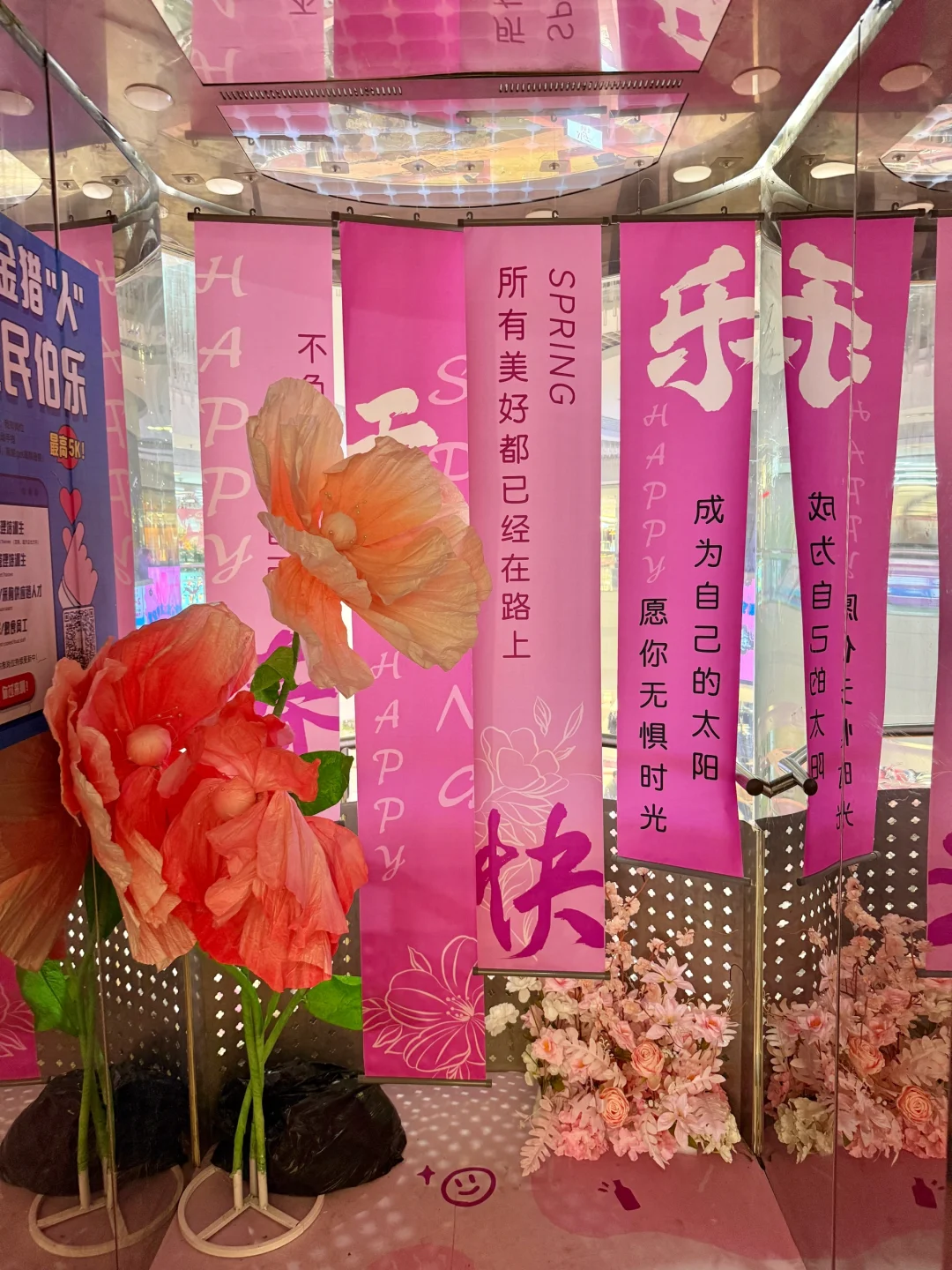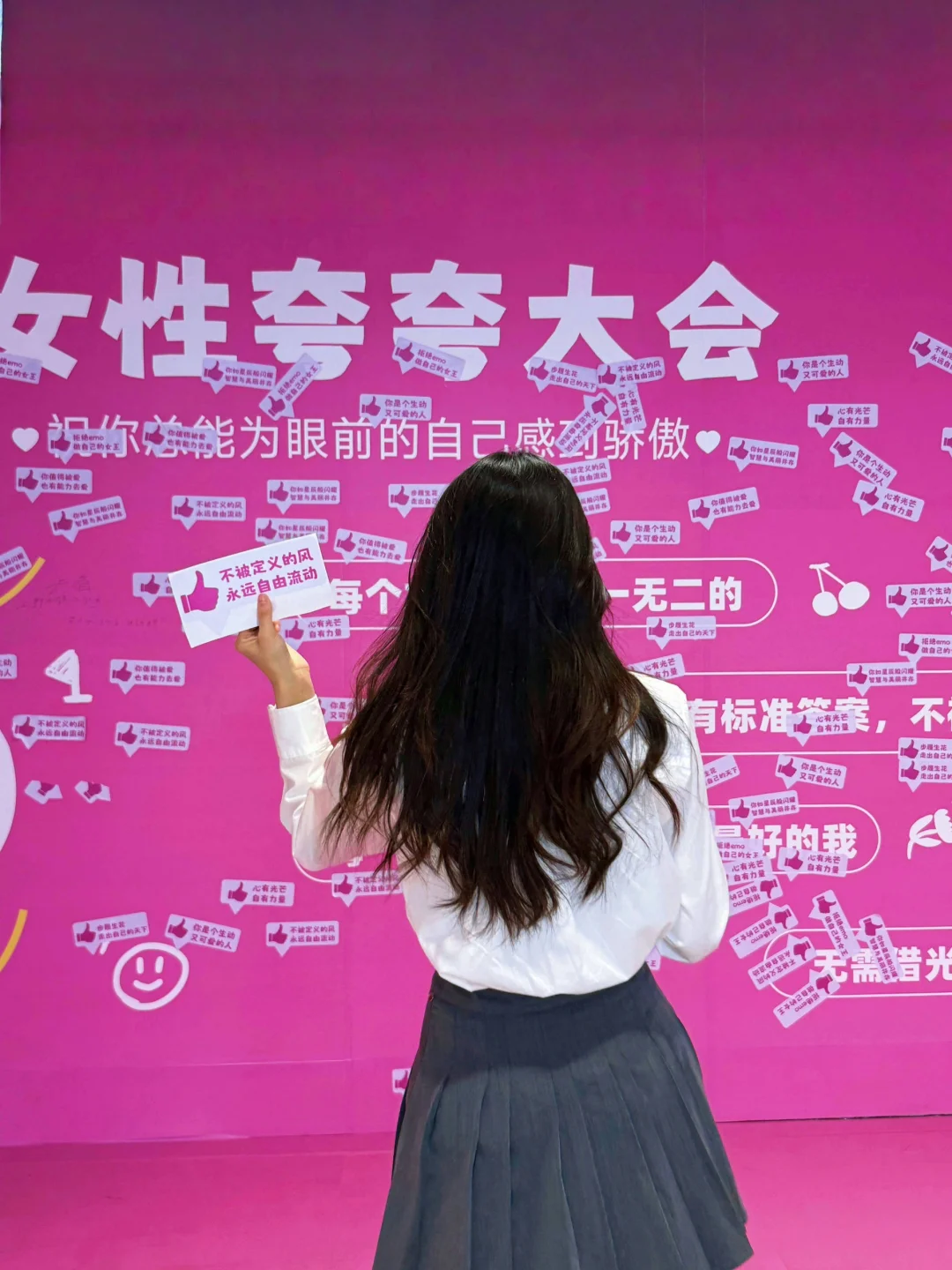 B一层西树泡芙直走的扶梯处,有夸夸墙,秒变红毯大明星
