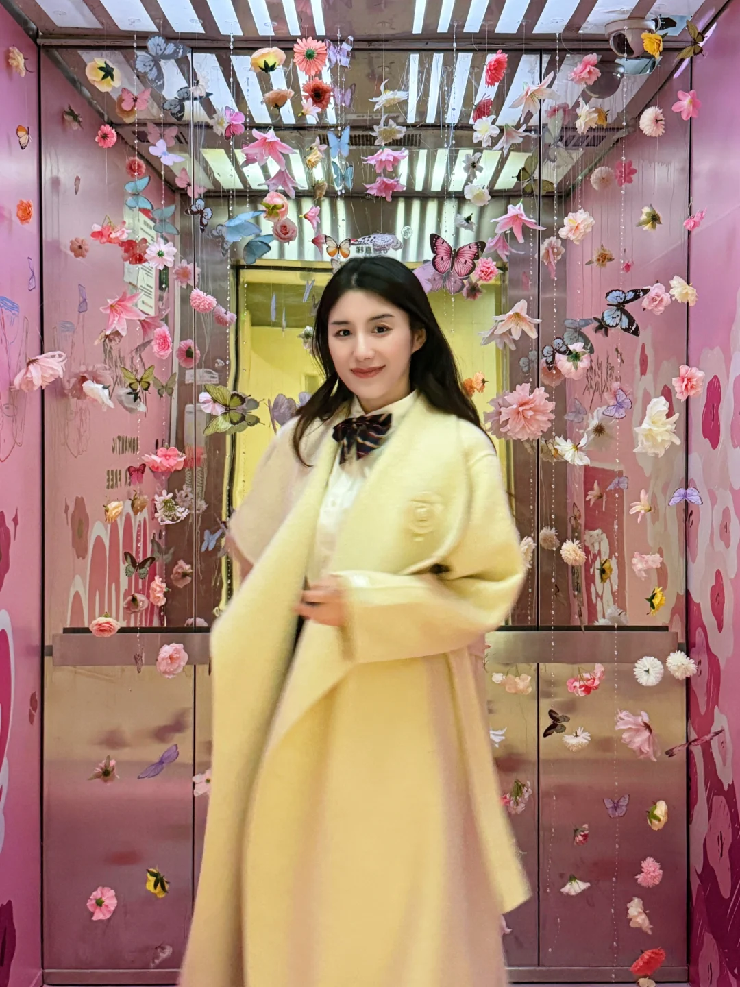 B1层,西树泡芙旁边的观光电梯里,光线有点暗,人像有点暗,可以用补光灯