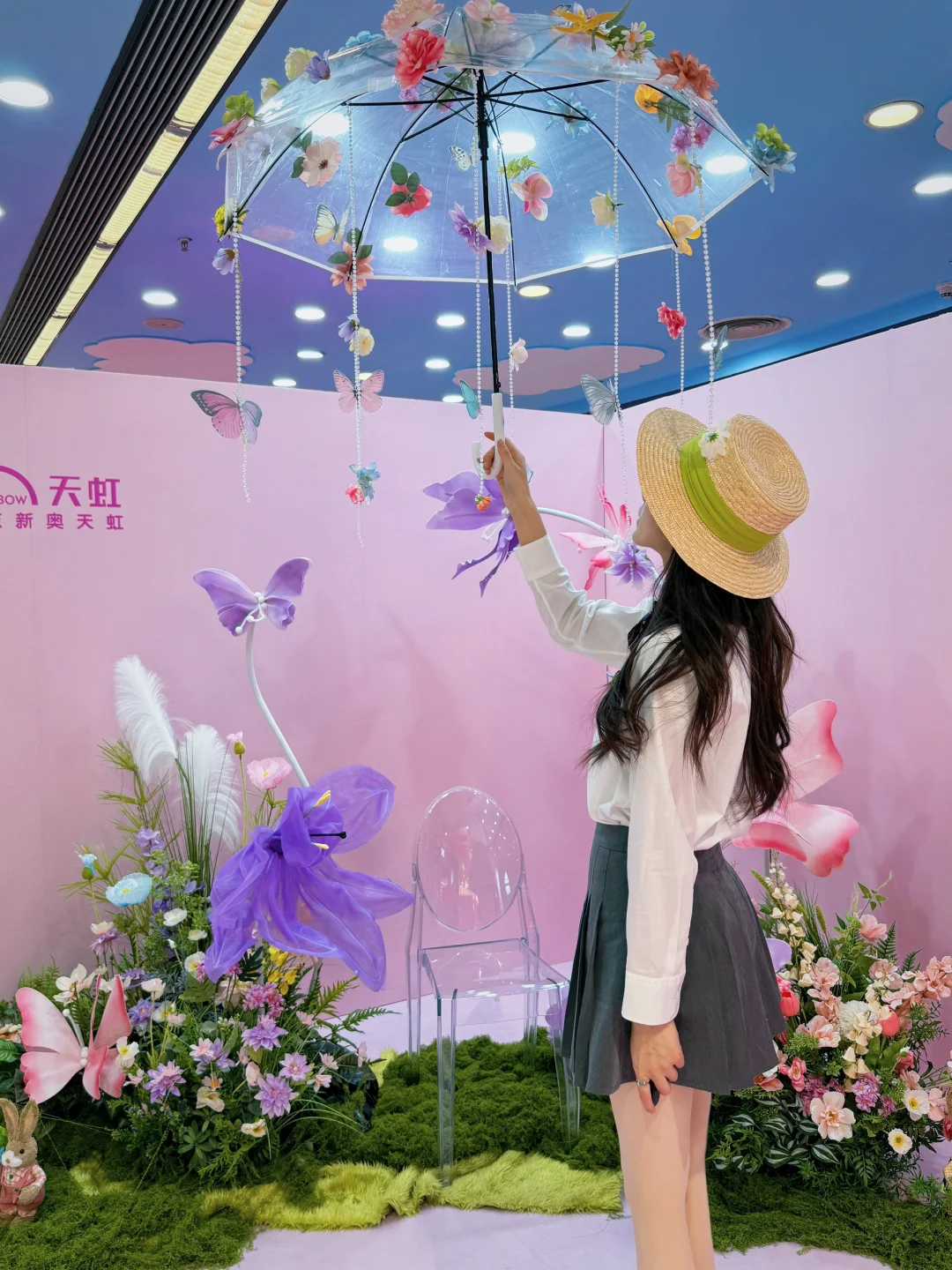 B2层,在超市对面太有艺术感了,花束透明伞氛围拉满,可以手持伞,或者侧身坐下