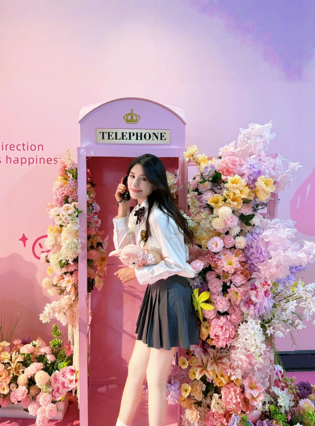 机位❷旁边的扶梯上去1层,就是电话亭花束装置处,晚上建议带补光灯,头顶直射光束真是扛不住