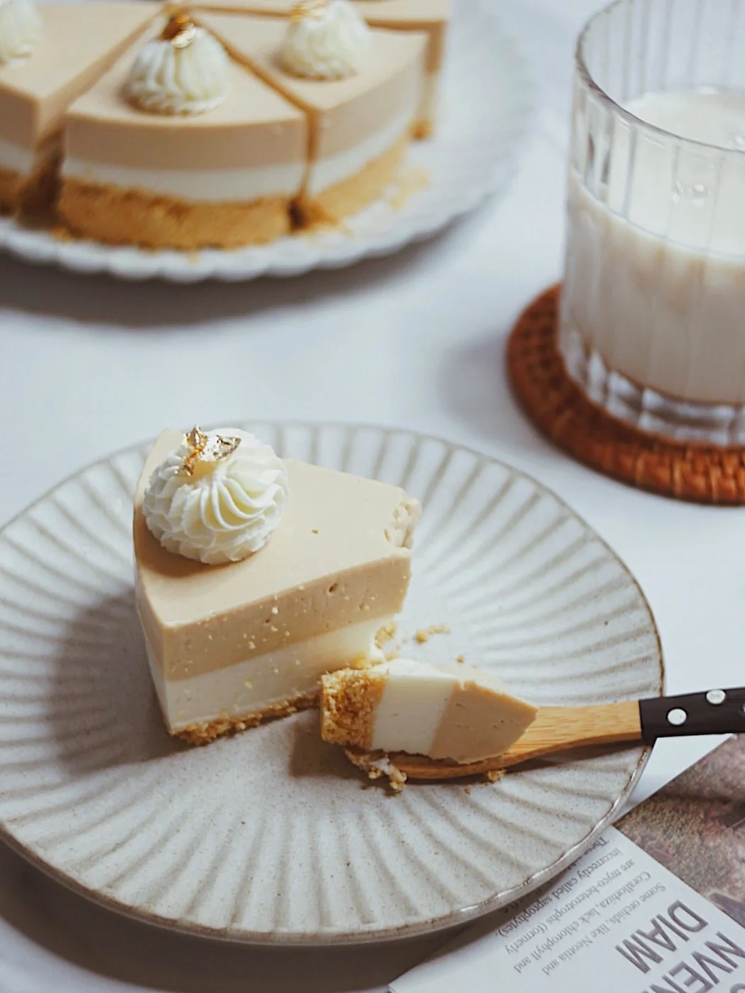 虽然这款甜品没有什么难度,但是❗️口感层次相当丰富,甜与苦的融合☕还有浓郁的芝士奶酪。入口丝滑细腻,轻轻一抿就能融化在舌尖。我还把生椰燕麦奶直接倒在咖啡里☕一边吃着芝士慕斯,一边喝着生椰拿铁,太幸福了[派对R]