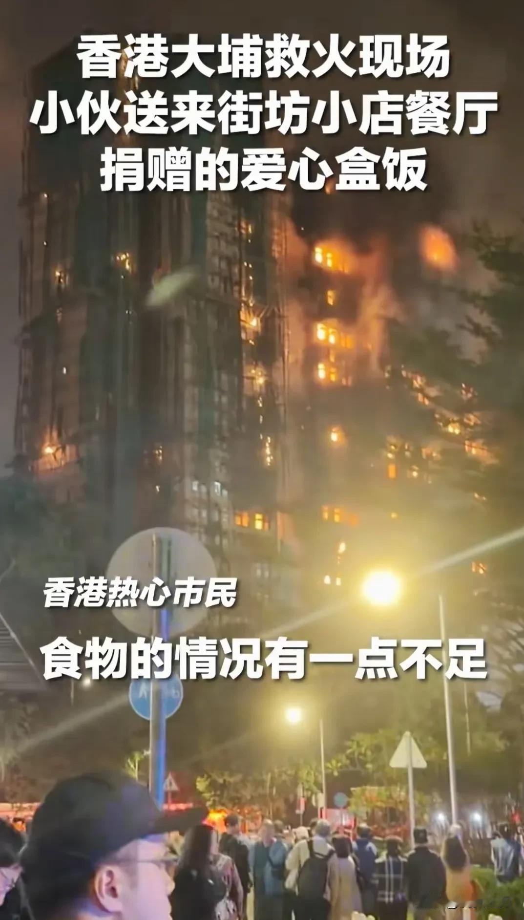 香港温暖在人间,有难伸出援助之手,共渡难关,传统美德刻在骨子里的心善——爱心盒饭 《大埔夜暖》 晚空烧起一片红, 钢骨烟中卷热风, 穿街过巷的身影, 饭盒裹着暖意浓。 小店炉头未歇火, 街坊手底赶热饧, 递到消防员臂弯, 汗里掺着烟火香。 香港的夜,有灯火接盏, 危难处,有手心递暖, 是市井的热,是巷弄的善, 刻在骨里的暖,焐热这夜晚。