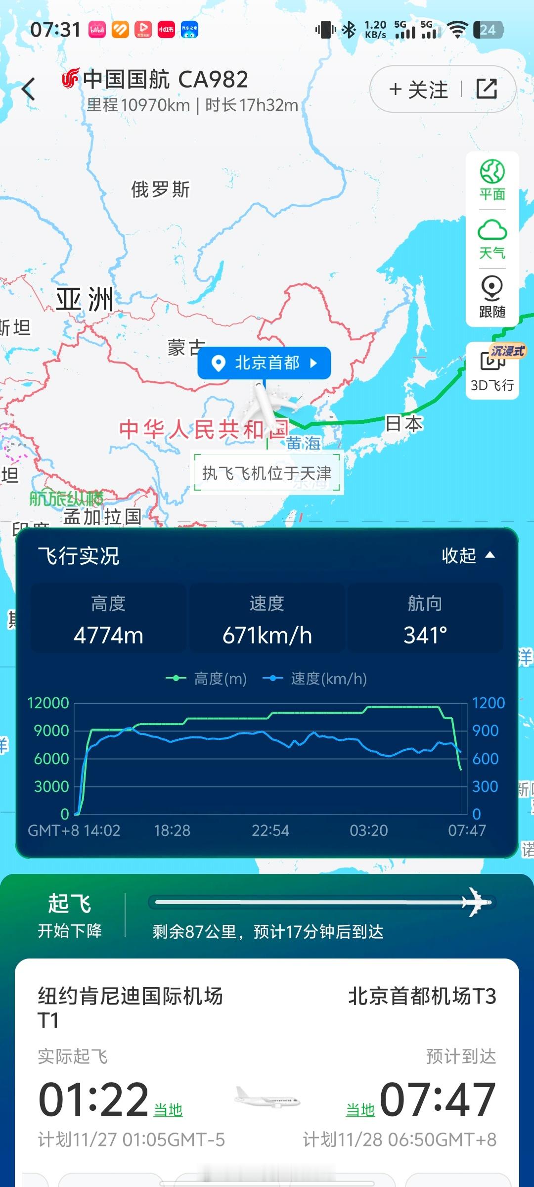 早安!这尾迹云一看就不一般,果然,748要落地了~