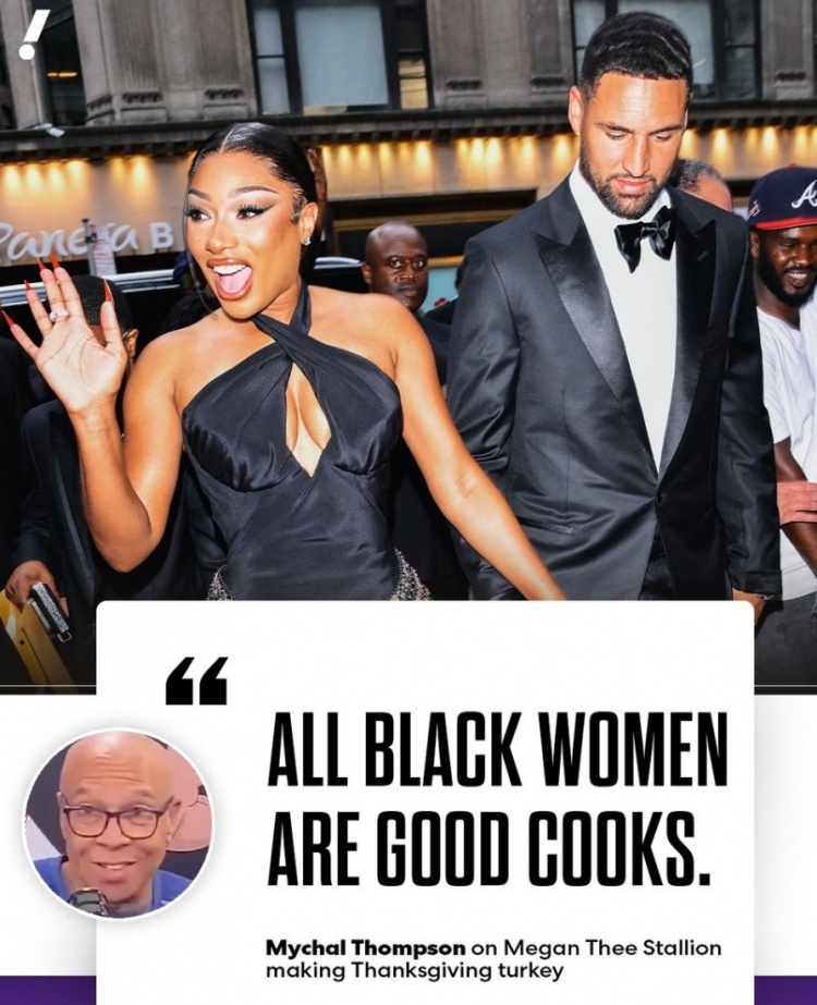 认可儿媳!今天是美国当地时间的感恩节。克莱·汤普森的父亲、两届NBA冠军迈克尔·汤普森表示,克莱的新女友Megan Thee Stallion将负责今年的火鸡大餐🦃。