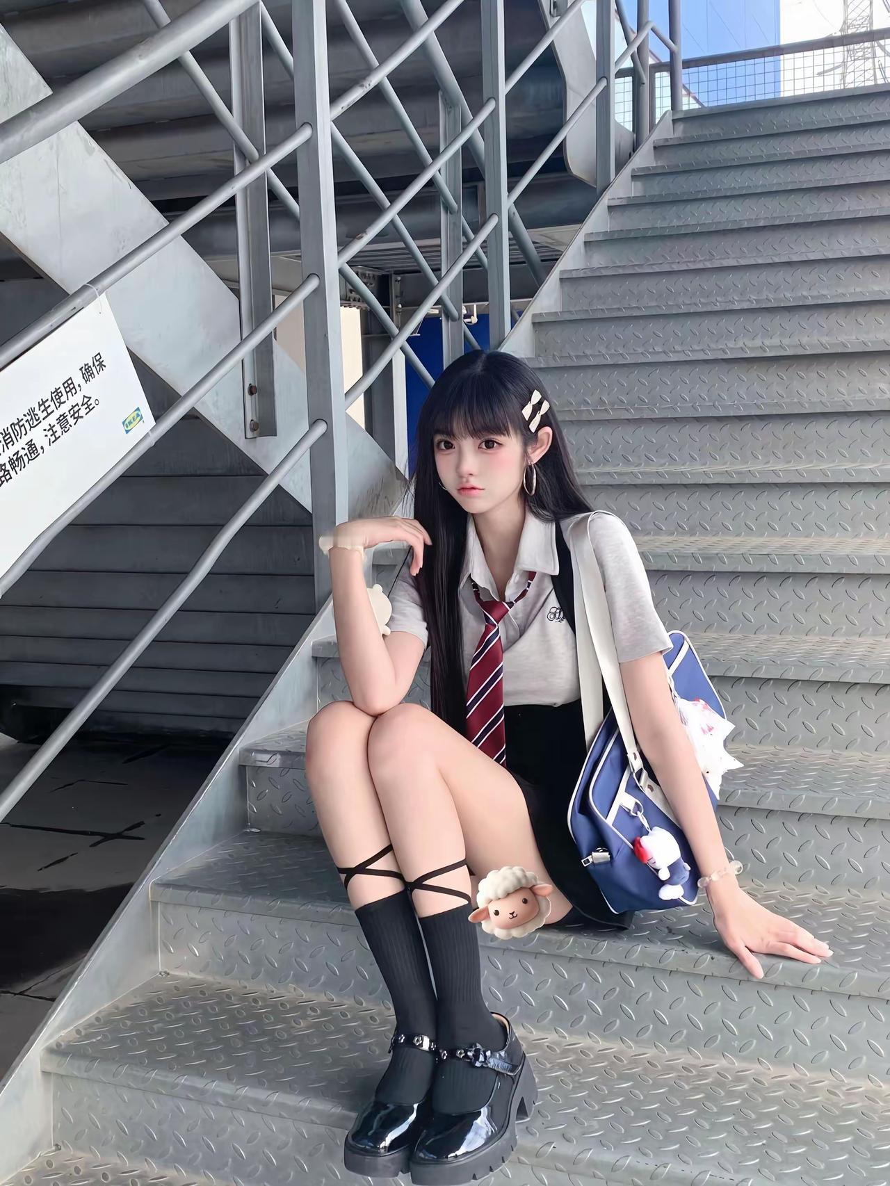 校园少女风,楼梯上的甜美瞬间可爱风少女 少女清纯风 少女的灵动感 青春校园美女