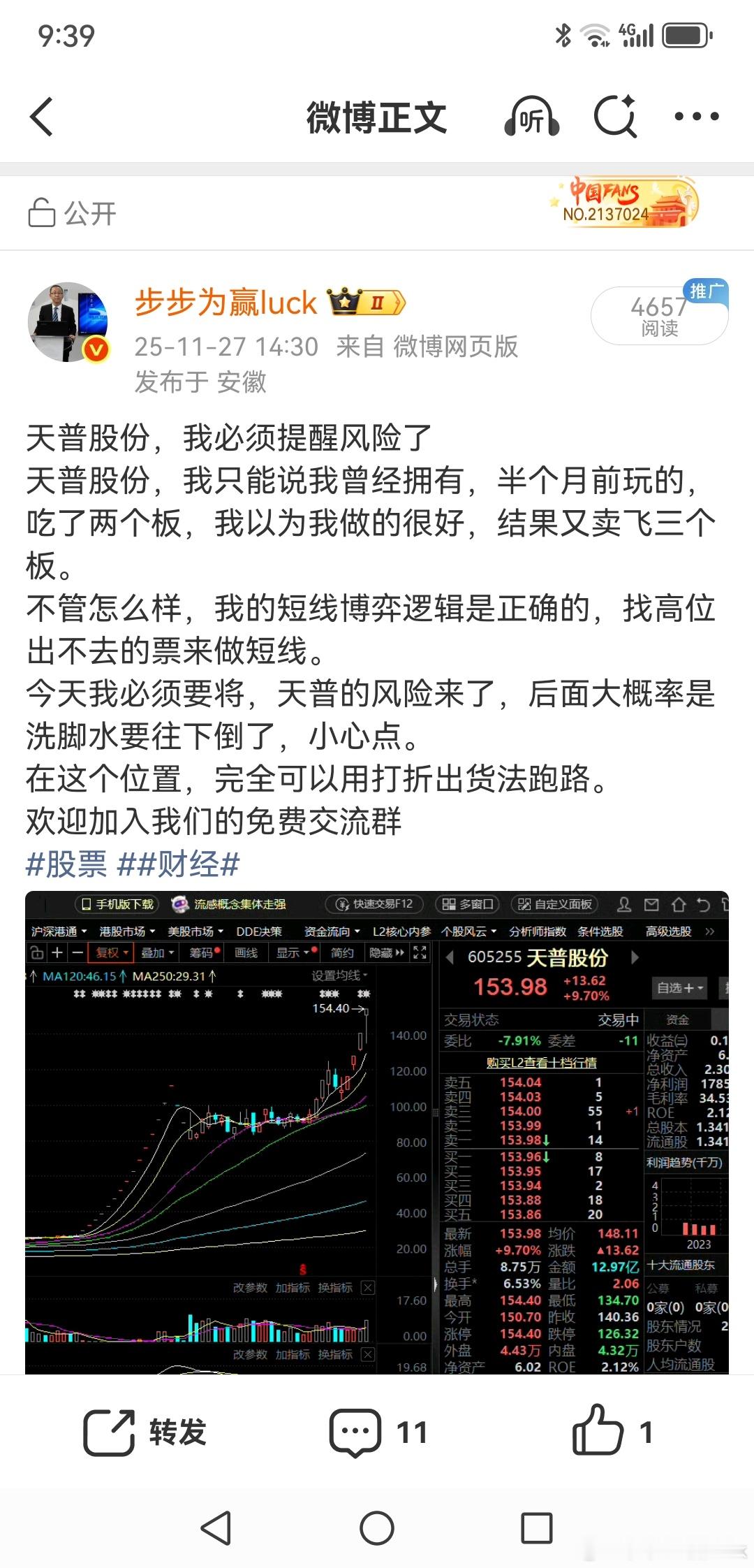 有群友说我的嘴巴够厉害的,其实我只是提示交易风险,没想到他二进宫被关小黑屋了。估计放出来,要有几个一字跌停了,这家伙昨天跑了不少。财经股票