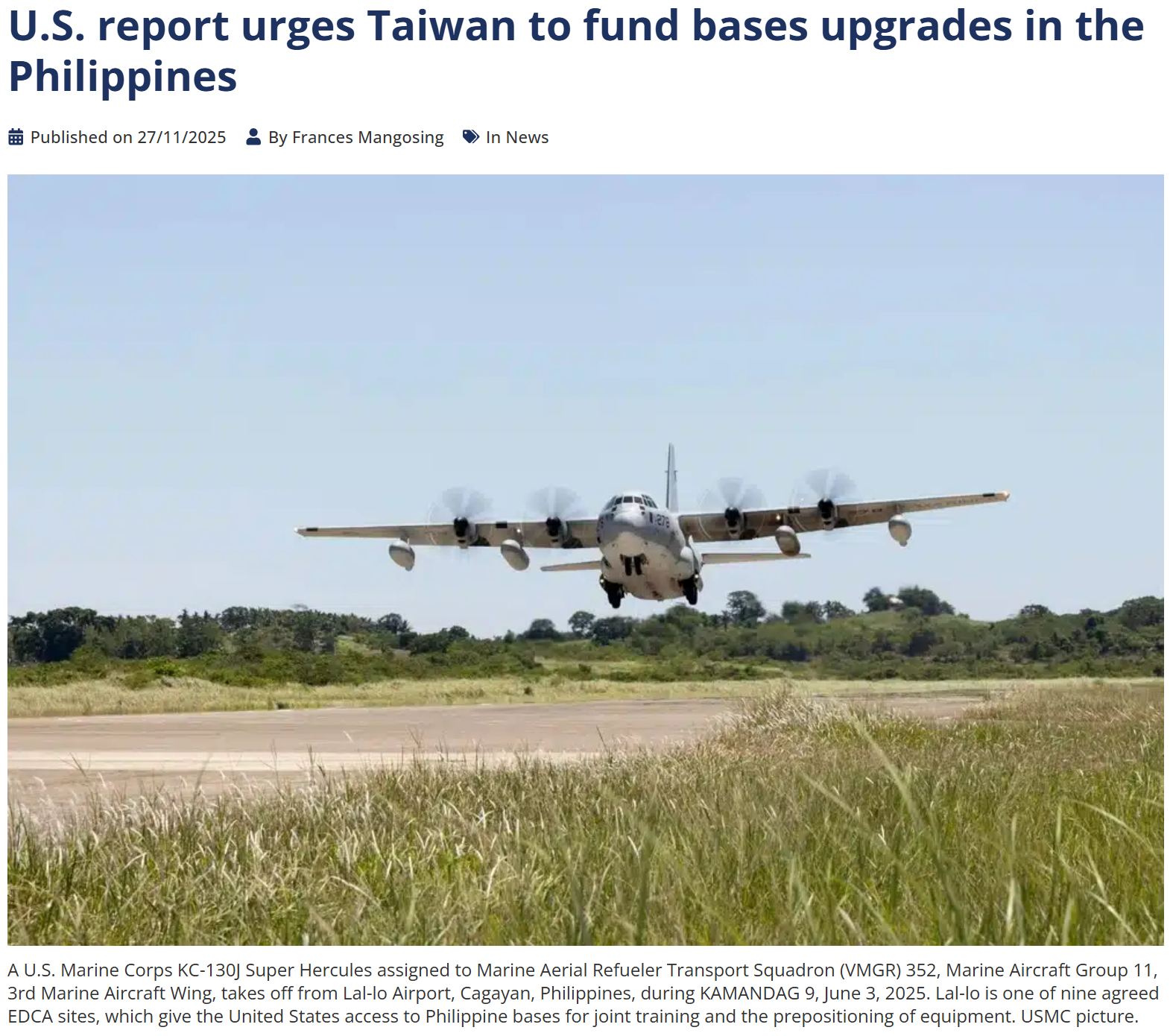 美帝建议省队出钱资助菲律宾基地升级项目