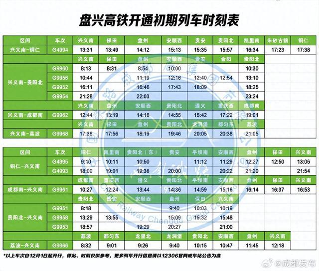 今天,盘州至兴义高速铁路开通运营。盘兴高铁线路起自贵州省六盘水市盘州市盘州站,终至位于黔西南布依族苗族自治州兴义市的兴义南站,线路全长99公里,设计时速250公里。随着该线路建成通车,成都南站至兴义南站最快6小时26分可达。
