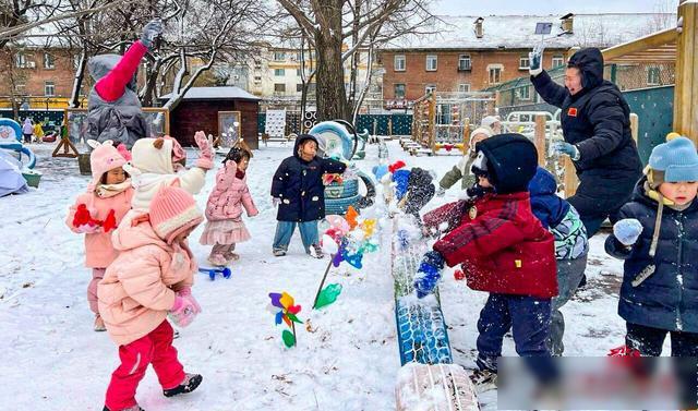 11月27日,沈阳农业大学幼儿园的孩子们在戏雪。张文魁/摄