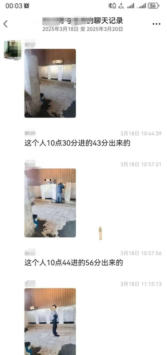 该网友告诉记者,他曾是南京某公司的车间工人,这段聊天记录可追溯至2025年3月,是一名员工向公司领导汇报车间工人的如厕情况后,相关领导又发送至部门群内的,而当时这些照片并没有经过马赛克处理。