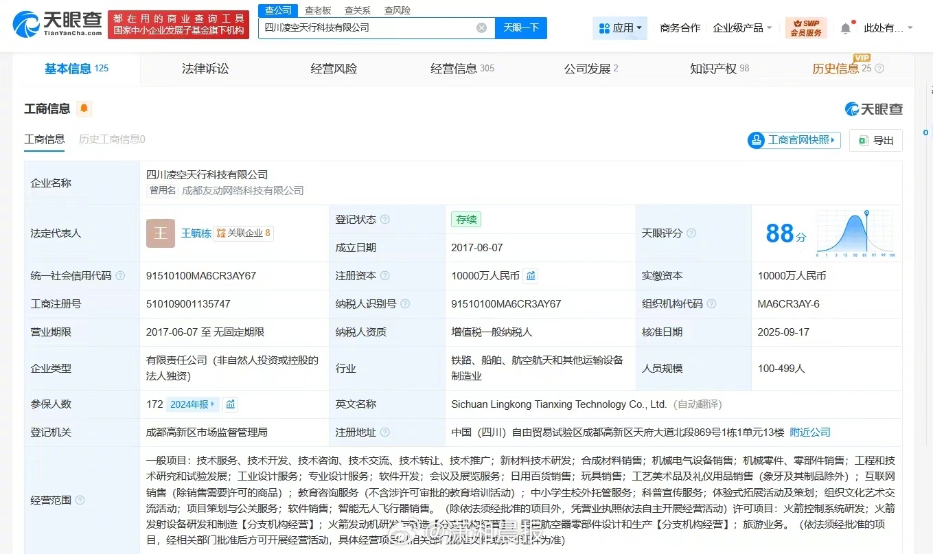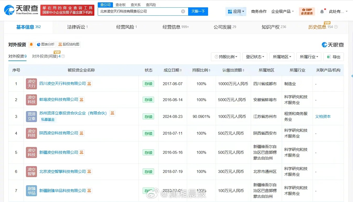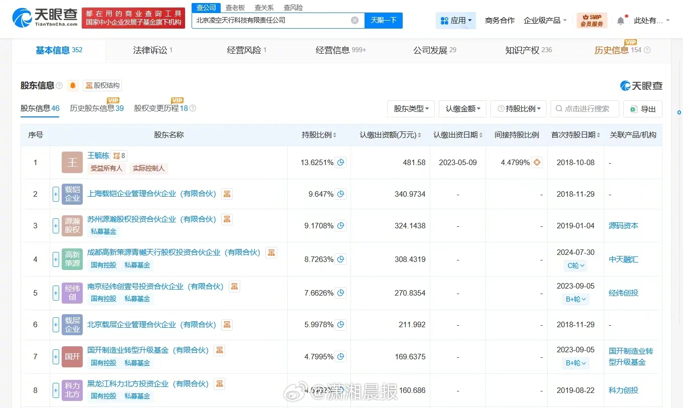 【#揭秘造出导弹民企凌空天行#,#民企造出高超音速导弹#】据媒体报道,近日一则“四川民企造出高超音速导弹”的词条引发热议。相关企业凌空天行表示,“驭空戟-1000”高超音速导弹基本型已成功实现量产。同时,集成人工智能决策与集群协同能力的“驭空戟-1000”智能型正处于全力研制阶段。对于网传“造价仅需70万元”的信息,公司方面并未直接回应。潇湘晨报记者查询天眼查工商信息发现,凌空天行关联主体北京凌空天行科技有限责任公司成立于2012年8月,法定代表人为王毓栋,注册资本约3534.5万人民币,经营范围含运载火箭、探空火箭、航天器、固体发动机、液体发动机、姿控发动机、航天器配套零部件、航天配套设备、电气设备的生产,基础软件服务,应用软件服务等。股东信息显示,该公司由王毓栋、上海载铠企业管理合伙企业(有限合伙)、苏州源瀚股权投资合伙企业(有限合伙)等共同持股。对外投资信息显示,该公司直接持股9家企业,其中8家为存续状态,包括四川凌空天行科技有限公司、蚌埠凌空科技有限公司、新疆凌空科技有限公司等。四川凌空天行科技有限公司成立于2017年6月,法定代表人为王毓栋,注册资本1亿人民币,经营范围含新材料技术研发、合成材料销售、机械电气设备销售、工程和技术研究和试验发展、工业设计服务等,由北京凌空天行科技有限责任公司全资持股。 四川
