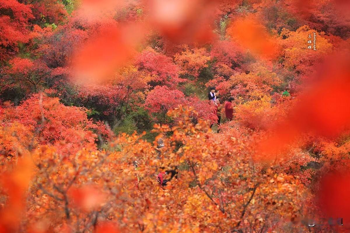 郑州私藏红叶山谷,拍片不输北京香山。 从郑州出发一个多小时的车程便到达了巩义竹林镇的长寿山,11月下旬的长寿山已经完全被"红绸"包裹着了,从山下到山上红得像是被阳光点燃一般,一阵阵山风掀起尝尝红浪,走在山间,感觉连空气都是红的,随手一拍就是大片。