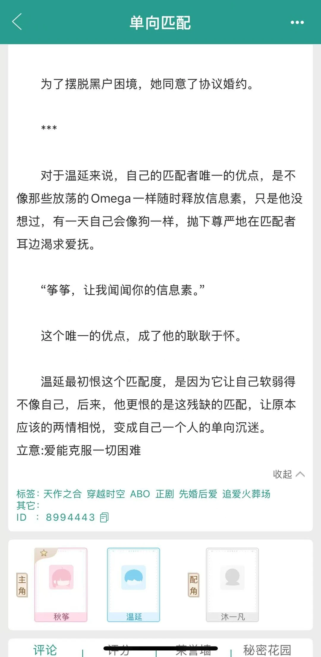 [种草R]女主穿越前是平等世界的独立女性,穿越后因为Omega的设定,在ABO世界低人一等,又因为不可抗力需要跟男主匹配结婚,但女主自身具有成熟的三观,所以对这个世界乃至男主也带有一定的偏见。