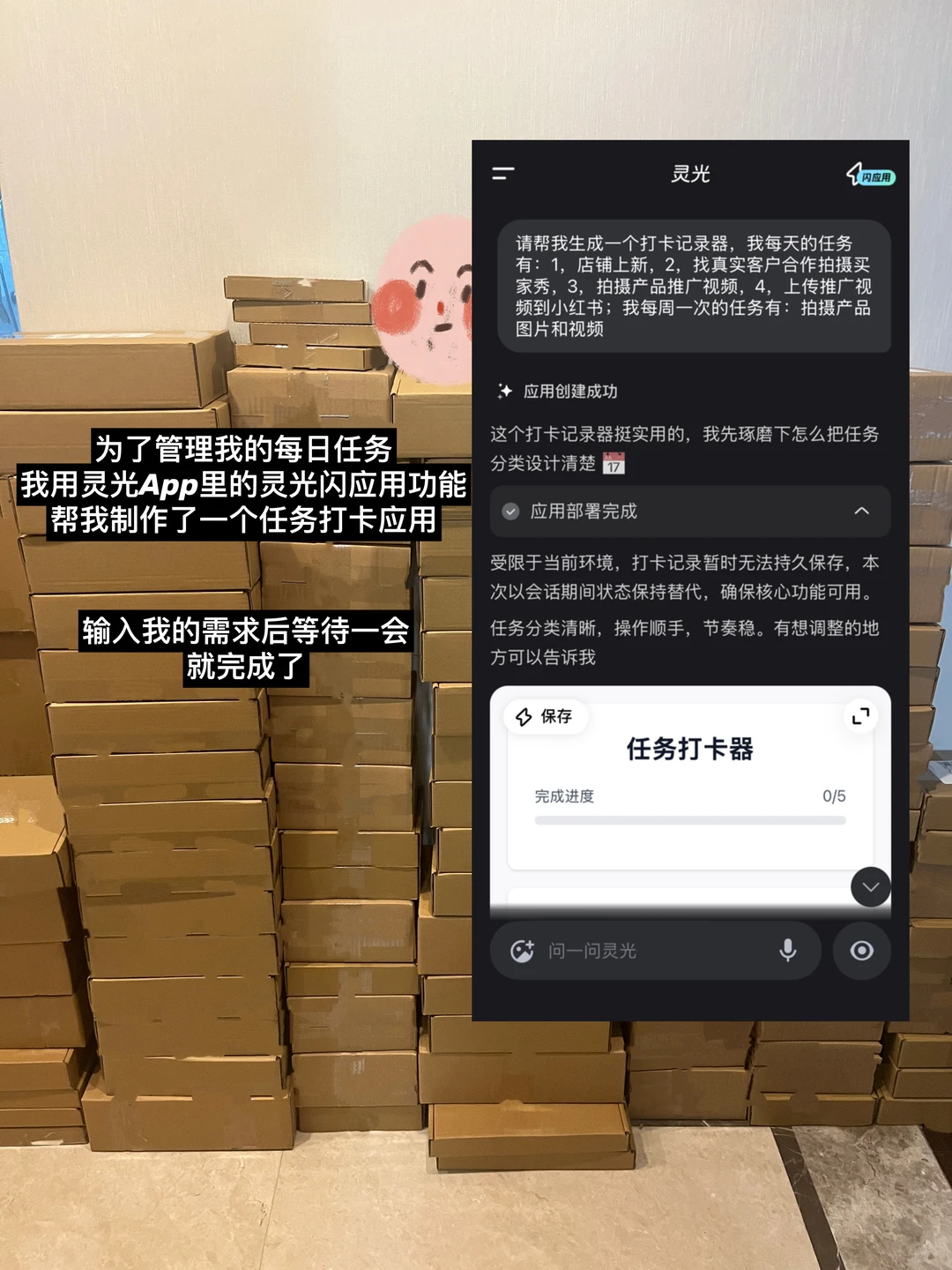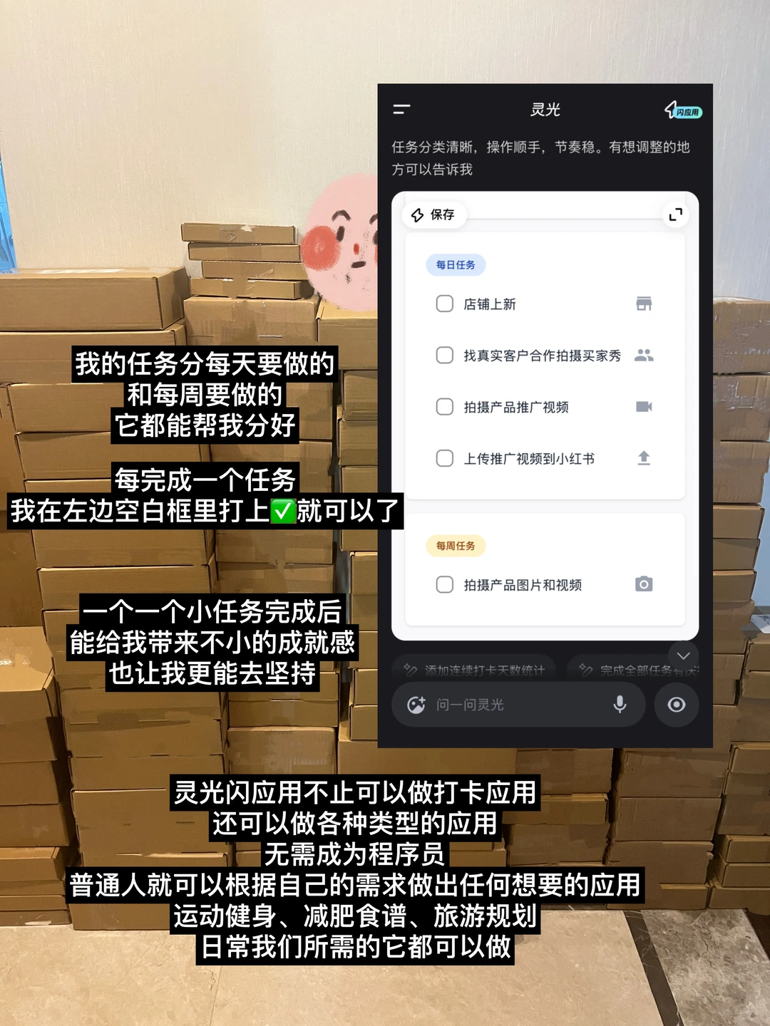 先用「灵光对话」搞定战略布局,先帮我确定大方向和具体行动路径,再用「灵光闪应用」生成每日任务清单,这样执行起来就更简单了!