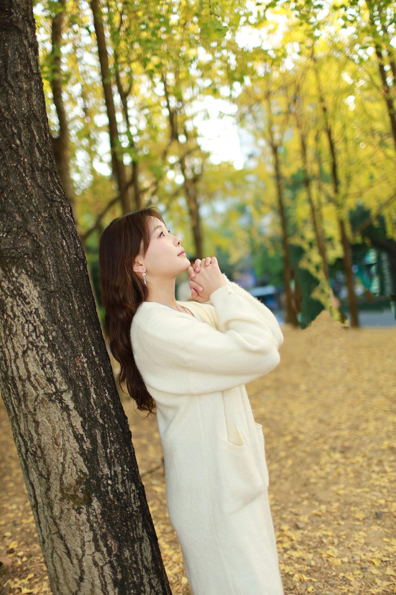 偶遇,柳候公园的银杏树。小姐姐气质优雅,表现力非常不错。暖冬,微风,就让这迷人的