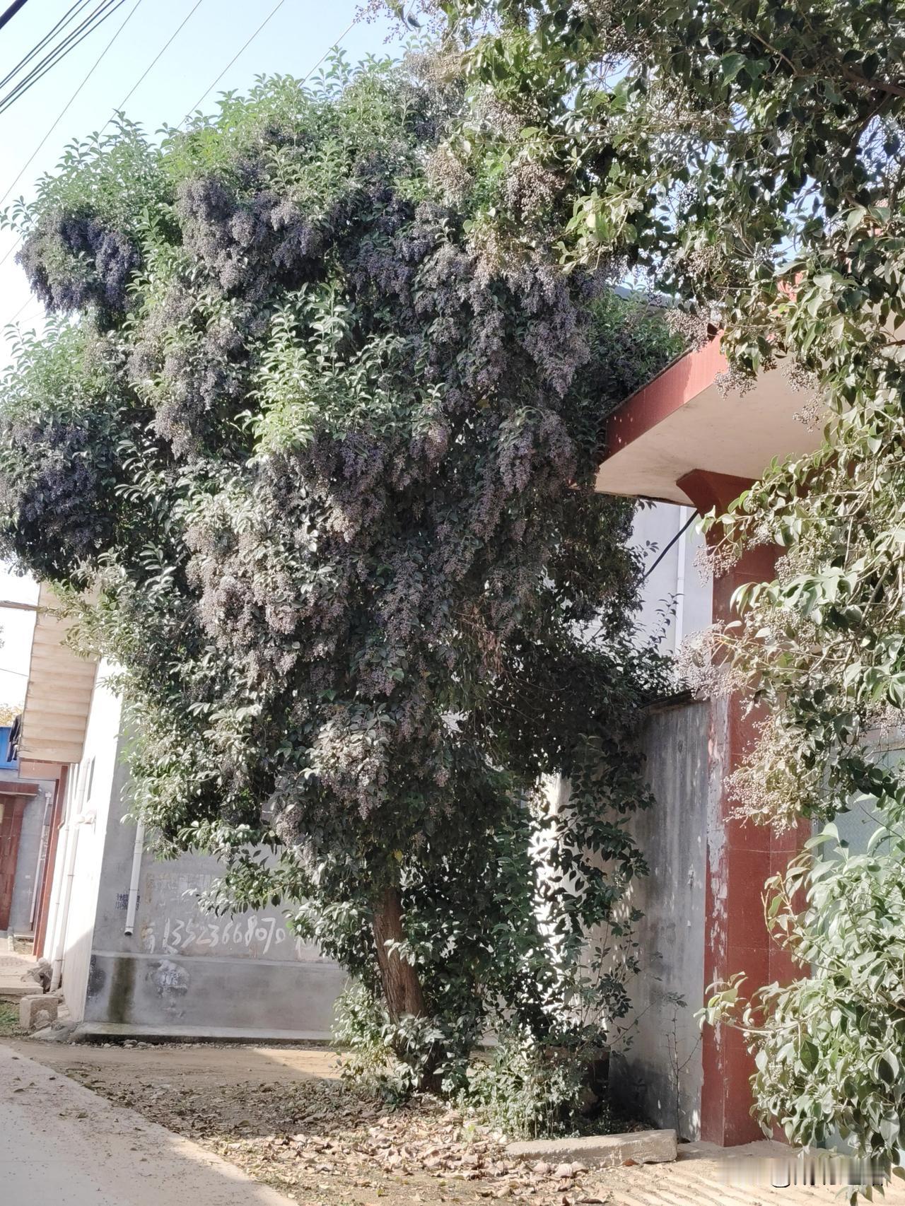 今天出门遛弯,路过一户人家门口,眼都看直了——这树也太能结了吧!紫不溜秋的果子挂得满枝丫都是,跟披了层葡萄瀑布似的,连旁边房檐都快遮严实了。 正仰着脖子瞅呢,俩穿裙子的姐姐打旁边过,其中一个还伸手够了串果子,笑着说“这树也太会长了”。 我跟着接话:“可不是嘛,瞅着就旺得很!”她俩乐着点头,风一吹,果子晃悠悠的,连空气里都飘着点草木香,这普通的小胡同瞬间就活泛起来了。 老树蔓藤