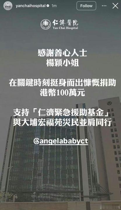 Angelababy捐款100万港币Angelababy为香港捐款100万港币A