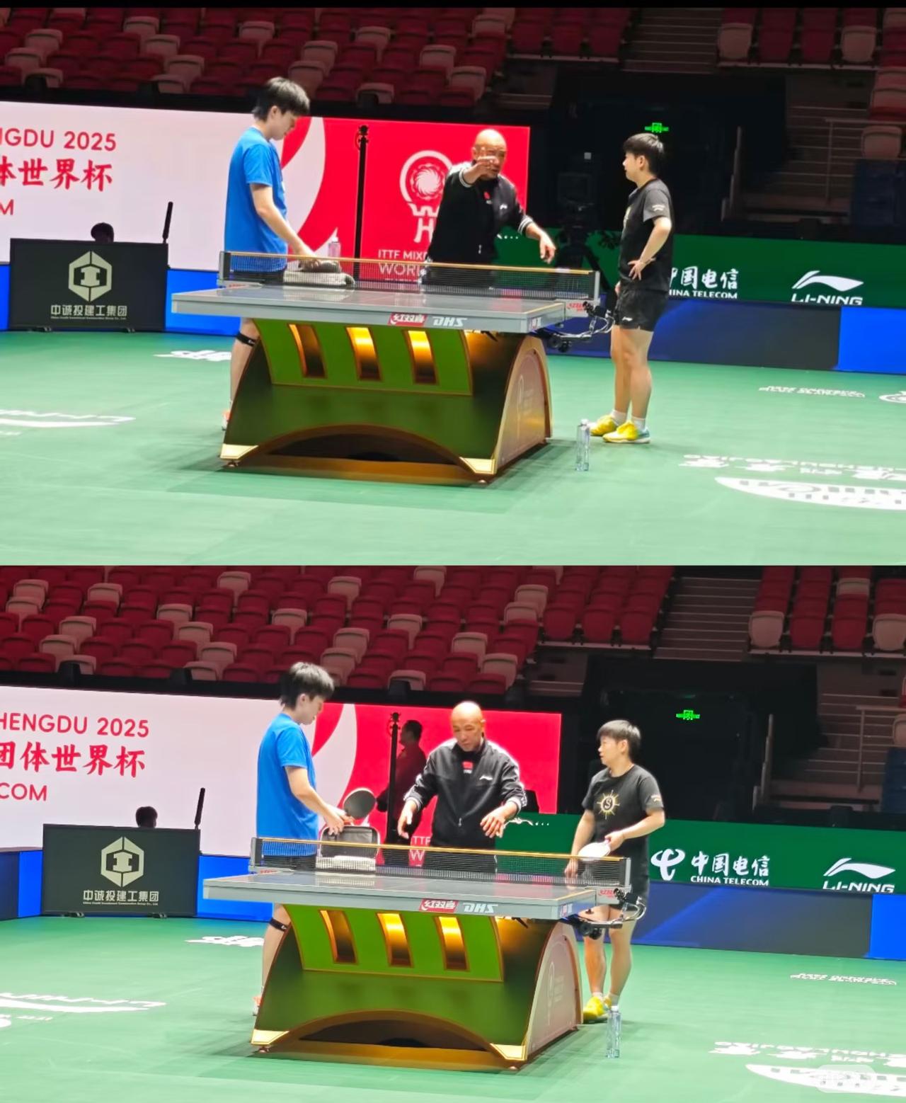 成都混团倒计时一天,王曼昱/蒯曼和林诗栋/梁靖崑对练双打! 11月28日,成都混团赛前训练, 王曼昱/蒯曼的女双练起来, 林诗栋/梁靖崑的男双练起来, 孙颖莎/王楚钦的混双练起来, 男双,女双对练, 混双莎头也会上, 肖战指导亲自上阵指导, 熟悉的感觉又回来啦, 成都混团孙颖莎/王楚钦就算磨合, 🇭🇰总决赛混双外卡给了莎头, 混团提前熟悉一下, 总决赛更好的发挥, 加油国乒, 期待成都混团国乒有更好的表现!