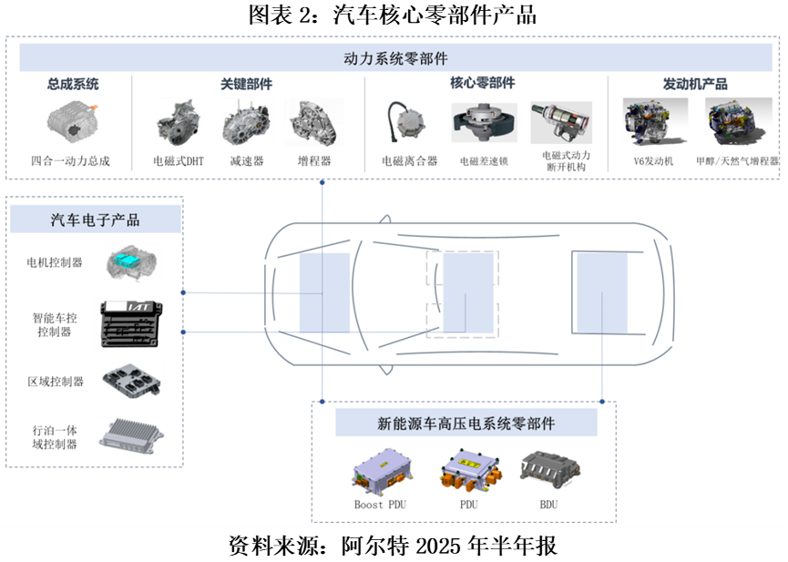 为摆脱困境,阿尔特近年来积极寻求业务突破,从2023年起由汽车设计向核心零部件制造领域拓展,目前已覆盖动力系统、新能源车高压电系统和汽车电子等多个产品方向。
