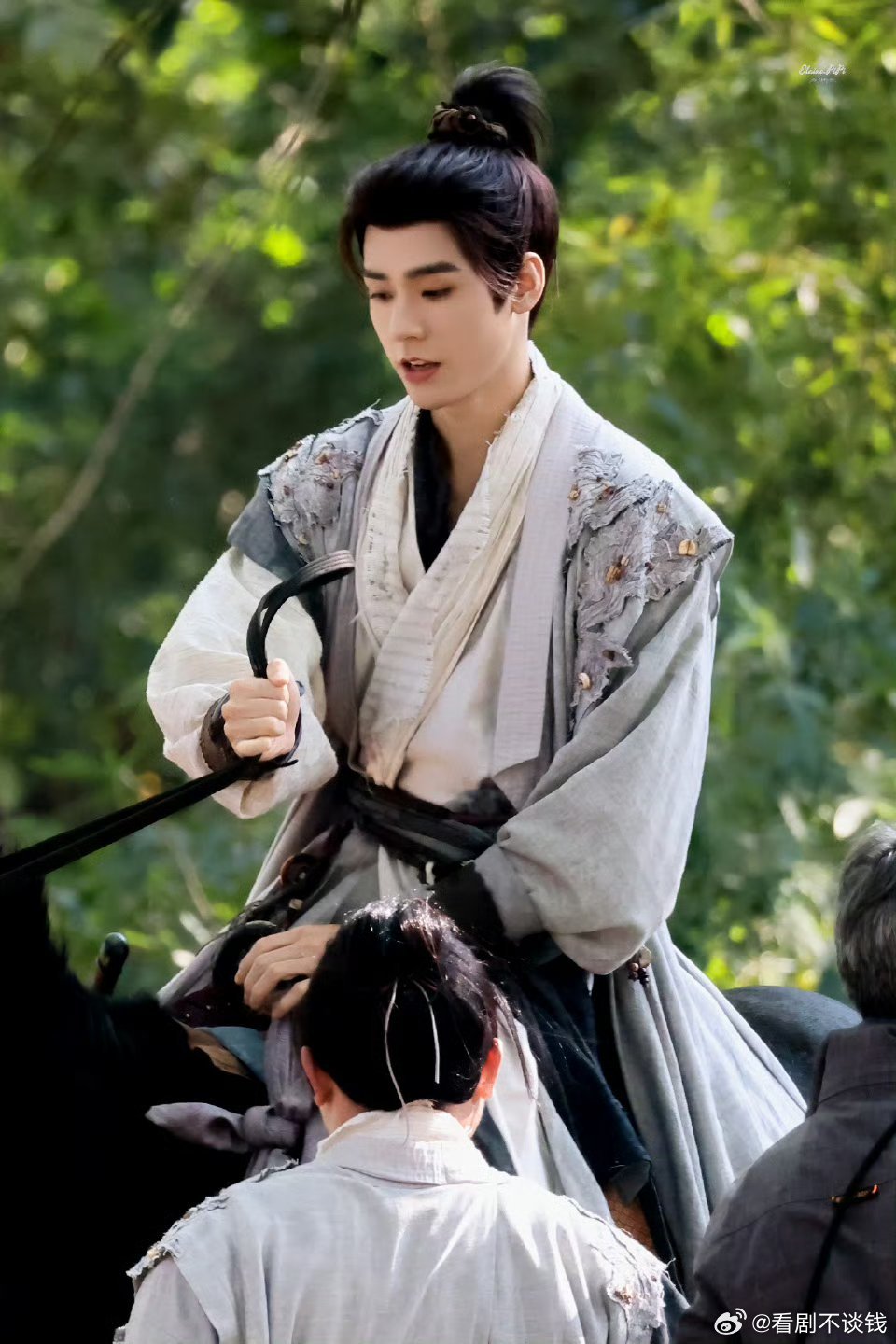 龚俊白衣公卿今日拍摄路透🈶可爱的丸子头逐渐变成了英气十足的高马尾