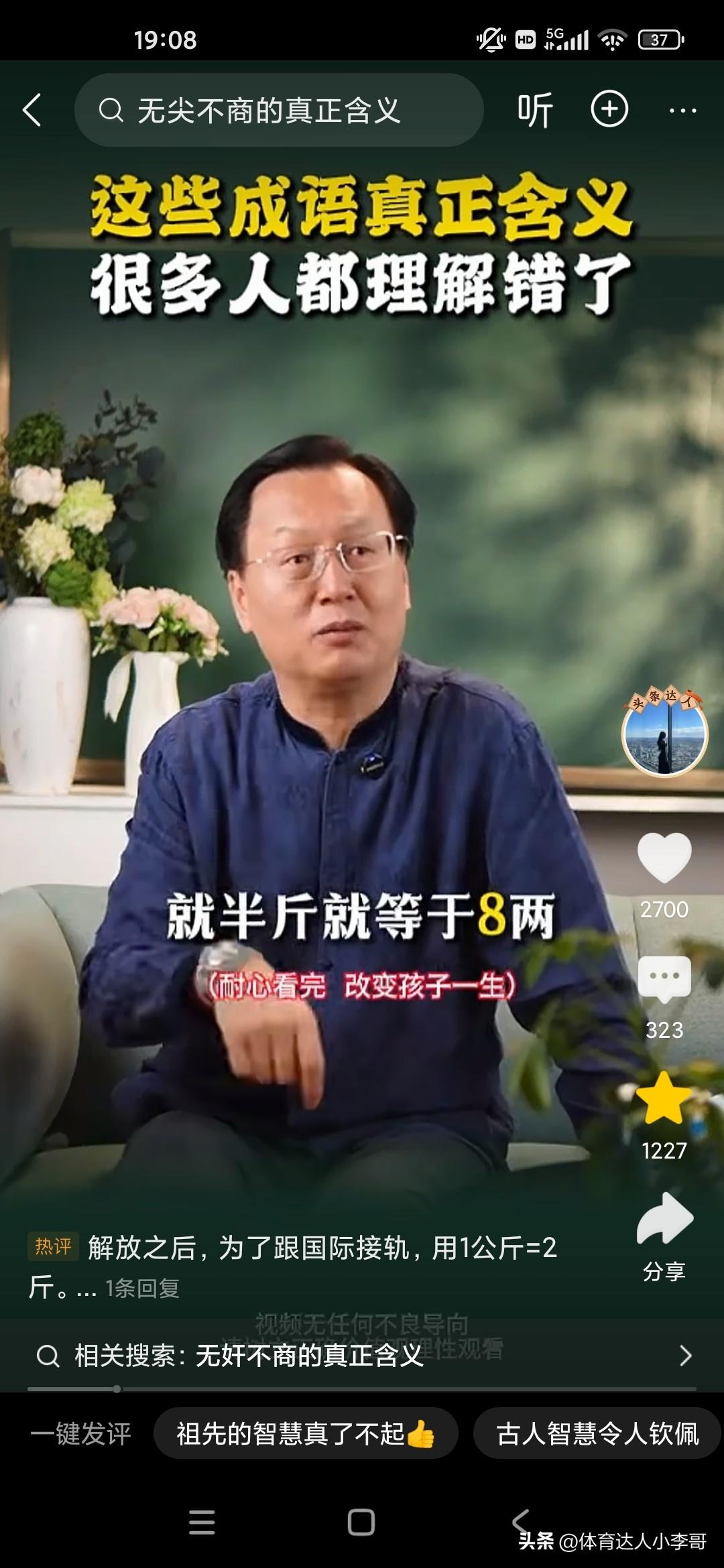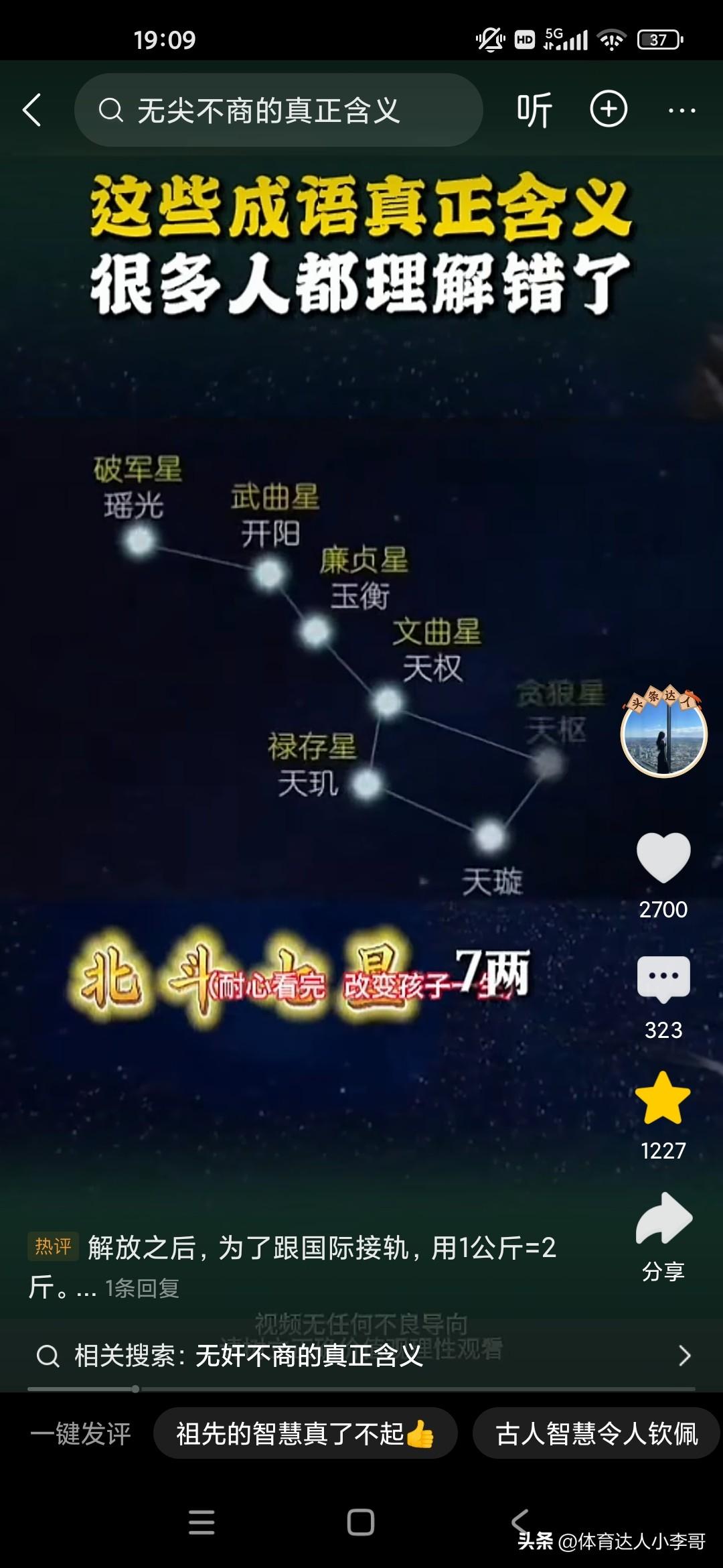 我到今天才知道什么叫做半斤八两,我以前一直在迷惑半斤不是5两吗?怎么和8两是一样的呢?比如说你们两个下象棋,他说咱们两个半斤八两,就相当于水平不相上下,那为什么半斤和8两会对等呢?原来在古代的话,那个时候的一斤不等于10两,在秦朝的时候是16两才等于一斤,那么这个16两是怎么来的呢?李志峰老师讲了之后我才恍然大悟,我们老祖宗的智慧啊,非常的厉害,首先是天上的星宿,北斗是7个星宿,南斗的话是6个星球,一共13个,再加上福禄寿这三个才叫16两,所以说你不得不赞叹我们老祖宗的智慧,所以说我们会说某些奸商缺斤短两,就是等于减掉他的福禄寿,所以说就是力劝那些商人的,不要做一些缺德的事儿,否则的话可能会影响到他的寿命!