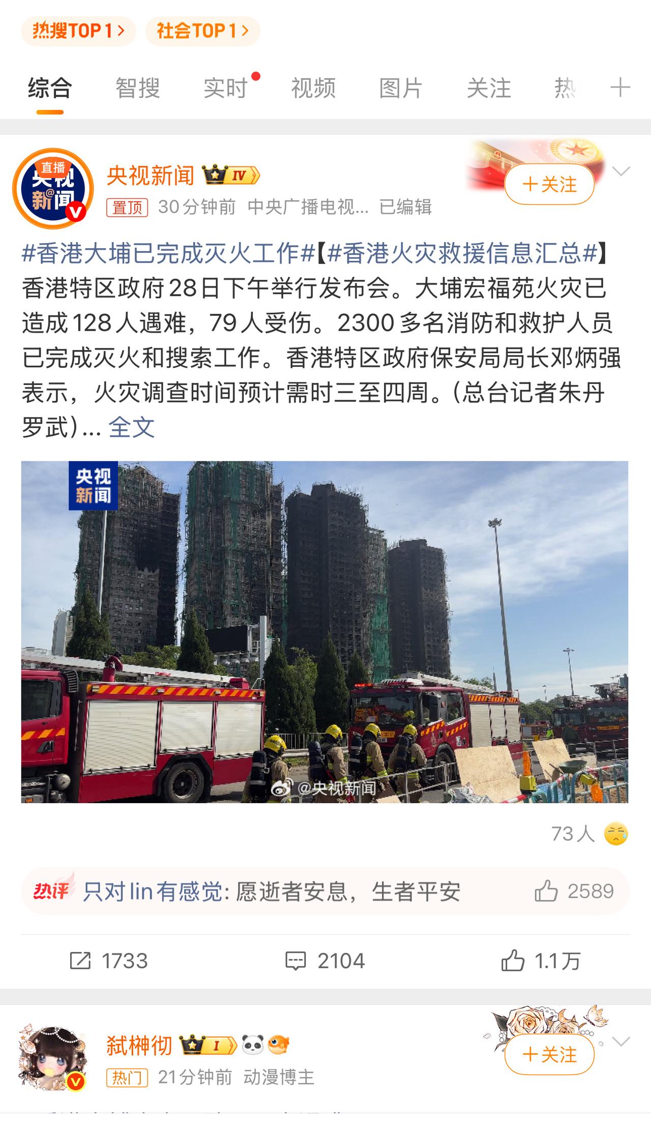 相信大家都知道这种无力的感觉吗?看着香港大火死亡人数从13个升到128,心里很痛!痛到不好👀这方面的新闻了!生怕数字再增加!这是多少个家庭啊!说什么都没有用了,只能祈祷了![流泪][流泪][流泪][流泪]