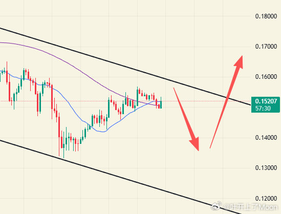 DOGE只要老马不喊没消息就非常弱,4小时上升旗形,短期阶梯式上行走得都比较经典,最终看上破,上方压力0.159附近,下方支撑0.135附近,币圈