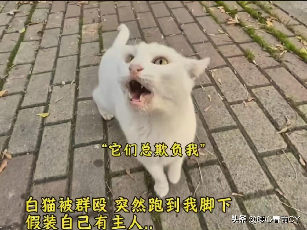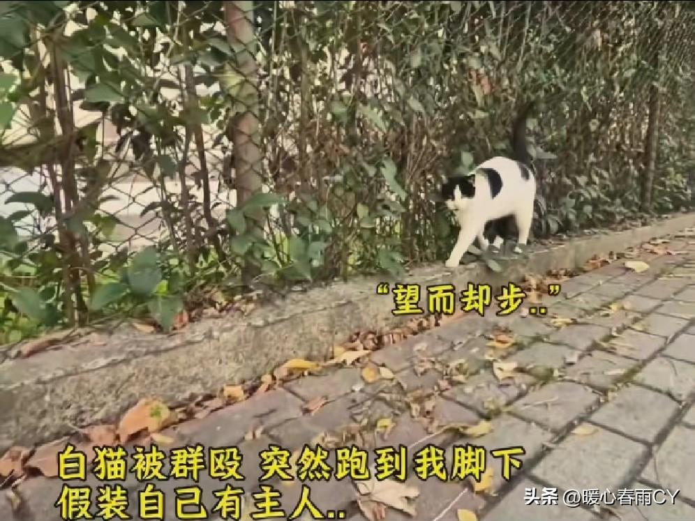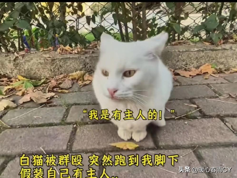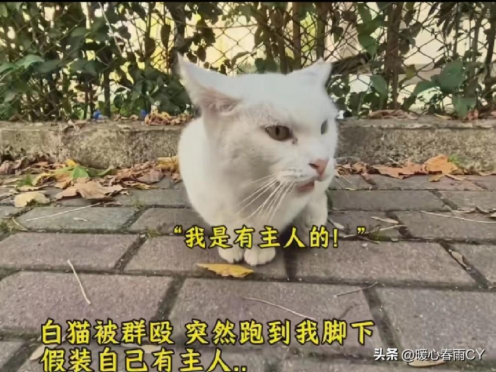 流浪白猫“假认主”求生,终遇心软主人,收获家的温暖! 一条飘落着枯叶的小巷里,一只纯白色的流浪猫正遭受“猫群围殴”的局面…… 危急时刻,它突然冲到一位路人脚边,摆出亲昵模样,好似在大声宣告“我是有主人的”。 这充满灵性的举动,竟真让围攻的猫咪望而却步。 原来,这只白猫长期被其它流浪猫欺负,只能靠这般“演技”来求生。 它会借着路人的“气场”,朝着曾经欺负它的猫咪凶狠哈气,仿佛在倾诉“它们总欺负我”的委屈。 三天后,那位路人因日夜牵挂这只既聪明又可怜的白猫,终于下定决心:“我要给它一个家!” 当它再次来到小巷,白猫远远就欢快地飞奔过来,亲昵地蹭着他的手~ 这一刻“假认主”的戏码成真,一句“我们回家”,为这只流浪猫的命运画上了温暖的句点。 在流浪的天地里,每一次“伪装”都是求生的挣扎,而每一次心软的收养,都是对生命的救赎。 愿每只流浪的小生命,都能遇到属于自己的“心软主人”。 秋日生活打卡季 创作训练营开营啦