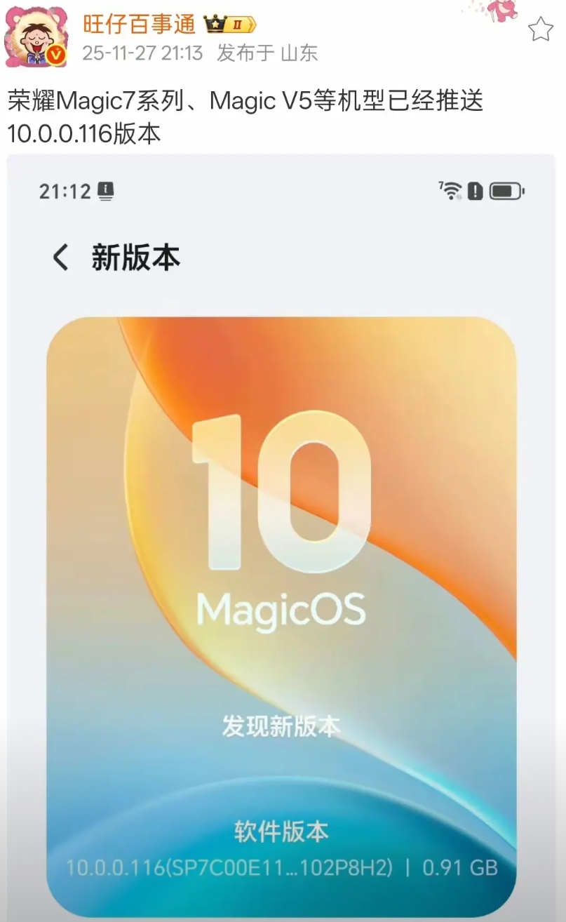 大家有没有发现,每次到月底的时候,荣耀推送系统的节奏明显变快! 荣耀Magic7的用户也开始116版本的推送,这个版本对续航和影像都有明显改善,赶紧去更新吧。
