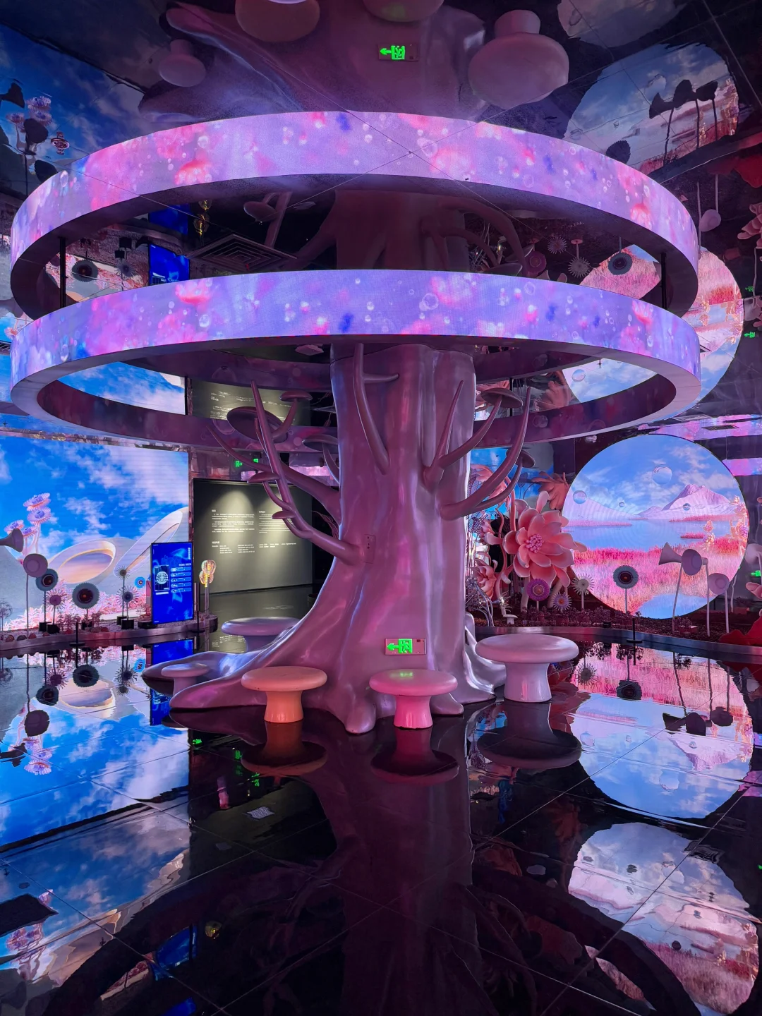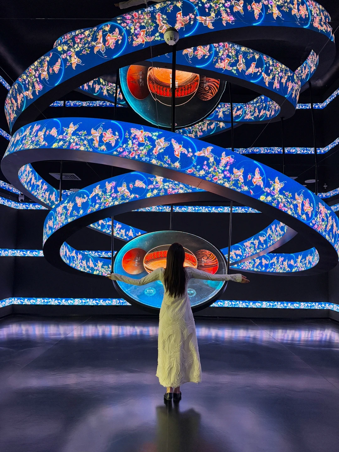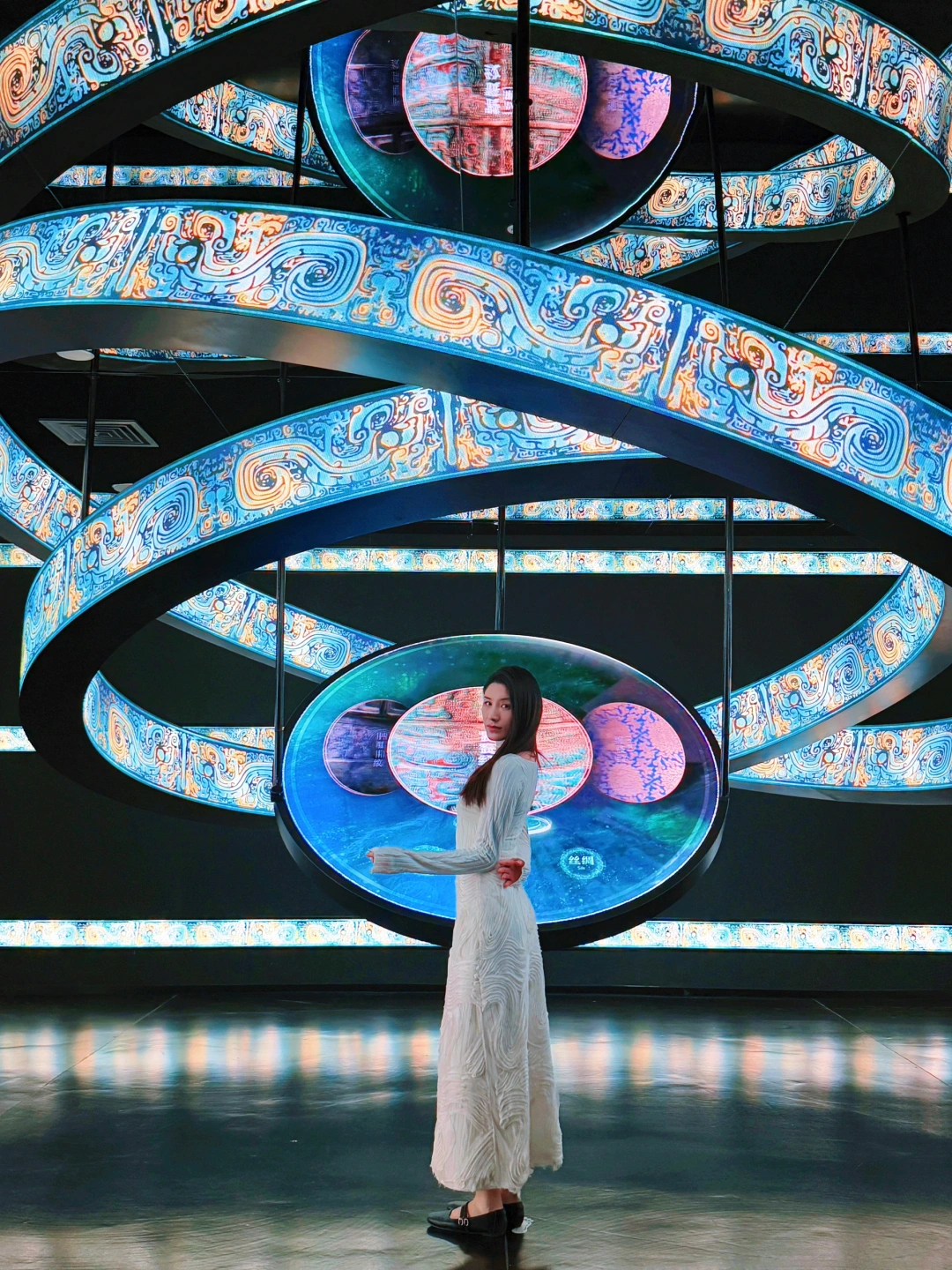 进去第二个展项,超大环形艺术装置,人物地面小脚丫位置,收装置全景!