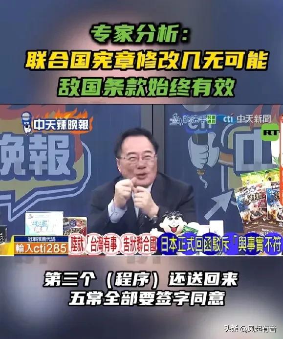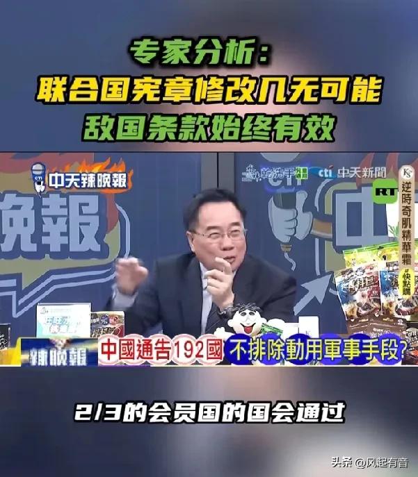 日本外务省妄言“敌国条款”形同虚设,专家分析称日本在白日做梦! 为反击高市早苗荒谬的涉台言论,中国驻日大使馆11月21日在社交媒体援引《联合国宪章》中的“敌国条款”再次警告日本。面对中方的严正警告,日本外务省竟然妄言“敌国条款”已经“形同虚设”。 那么,什么是“敌国条款”?它的厉害之处在哪里?“敌国条款”是《联合国宪章》第53条、第77条和第107条相关内容。它规定德意日等法西斯或军国主义国家的任何一国有再次实施侵略政策的任何步骤,中法苏英美等联合国创始成员国有权对其直接实施军事行动,无须安理会授权。也就是说,如果中国认定日本有侵略意图,可根据联合国“敌国条款”无须授权直接对日开战。 “敌国条款”就像高悬在日本头顶的一把利剑,让日本右翼军国主义分子寝食难安。日本等国家曾多次提出修改诉求,均以失败告终,因此,“敌国条款”自1945年联合国成立以来仍然存续。 日本修改“敌国条款”的企图为什么难以得逞?在台湾“中天新闻”节目中,多名国际政治评论员给出了答案。原来,要修改联合国宪章的任何条款都必须通过三道程序:第一道,联合国大会三分之二通过,即193个会员国中至少129国赞成。 第二道,修改案需送交三分之二会员国的国会批准,涉及100多个国家的立法机构。整个过程或耗时长达数年。第三道,安理会五个常任理事国必须全体签字同意。 像日本目前这种情况,恐怕连第一道程序都通过不了,更别说后面两道程序了。