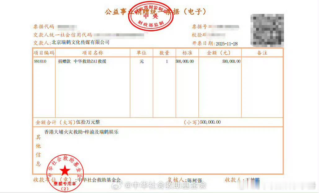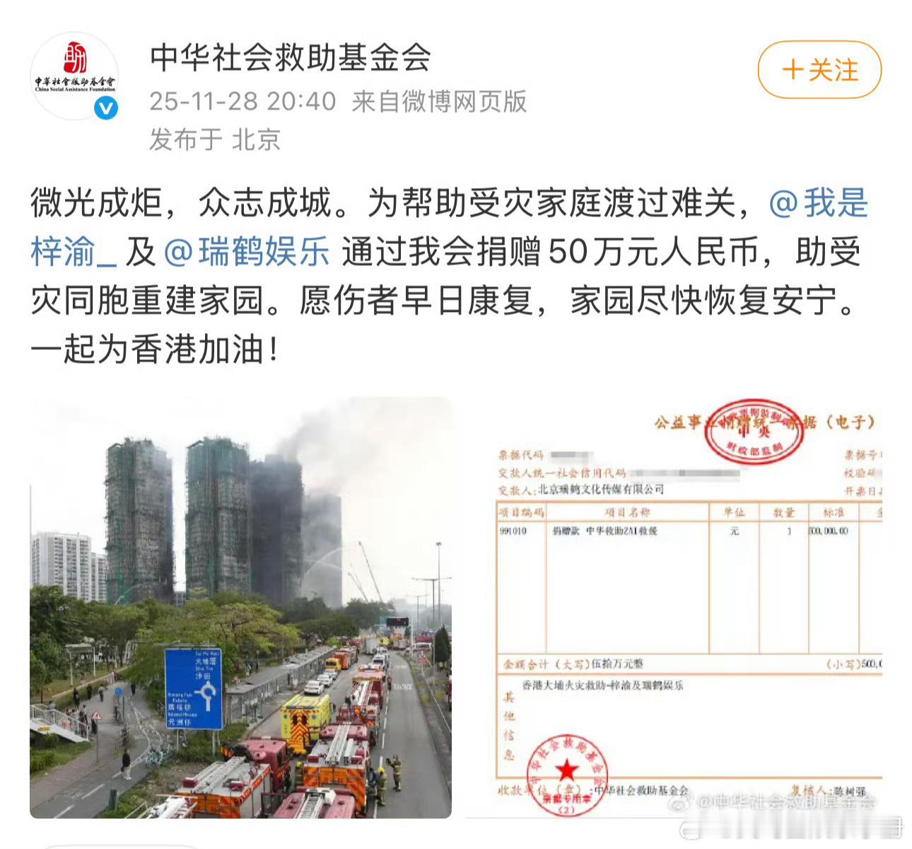 梓渝携手瑞鹤娱乐向香港捐款50万元明星捐款梓渝向香港捐款50万元