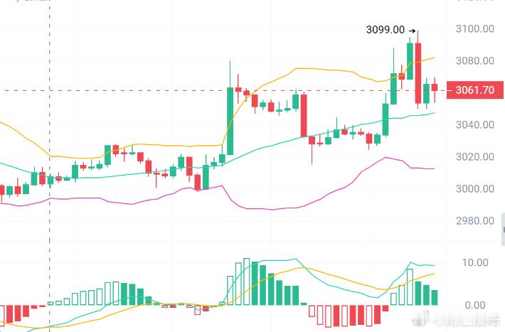 11.28晚间姨太今天的走势还不错,但是目前冲击结构还没站稳,出现小回调,短期还有南下形态。但是下方支撑还是很稳的,在3030这里有一级支撑,只要这里不突破,我们可以继续看向3130,当然姨太上方压力3100还没突破,价格只要在压力位出现降高,可以短线南下,现在价格还在布林带中上轨震荡,晚间可以低哆丝路为主。回踩3030左右哆,木标3100,3130。