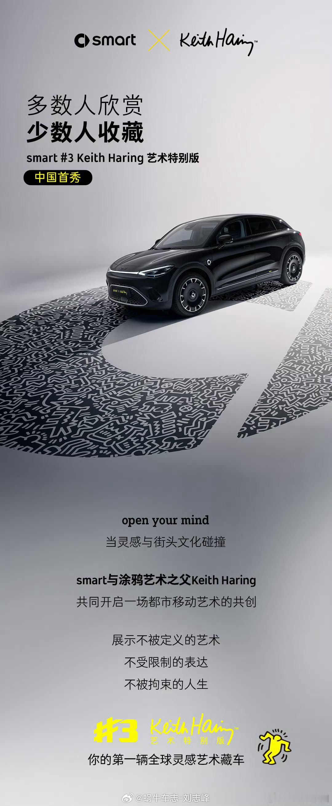 上次smart精灵5 跟Aape合作已经有点意思了,今天,又收到smart和Keith Haring联名产品,获得感十足smart现在锐意年轻,借力潮品带货,产品也更为年轻~年轻人们买车真可以看看这smart,产品设计和安全都到位~