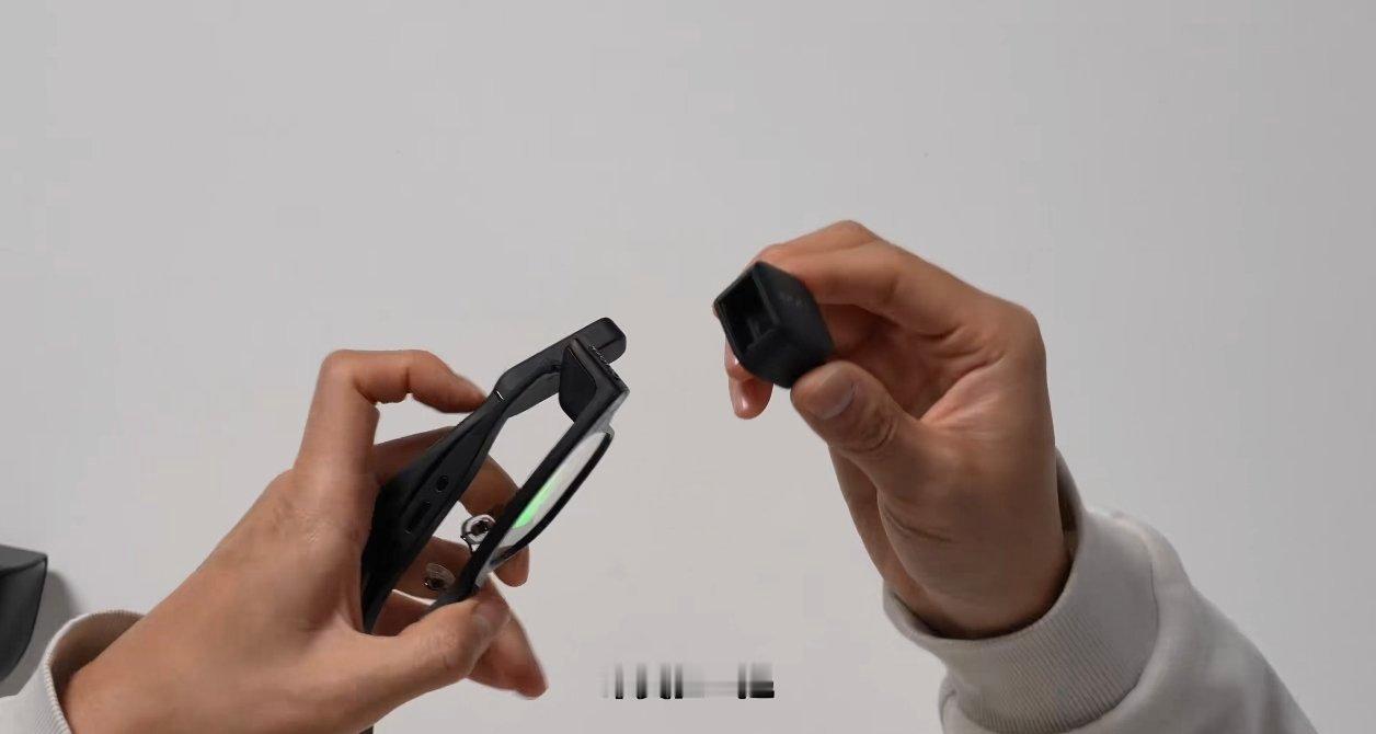 夸克这个Al眼镜还是有点意思的,三种充电方案,分别是换电眼镜镜腿尾部、眼镜自带充电仓、眼镜直接插拔充电。目前这个电池方案没有解决的情况下,这种方法保证续航,也算是一个较好的方案。