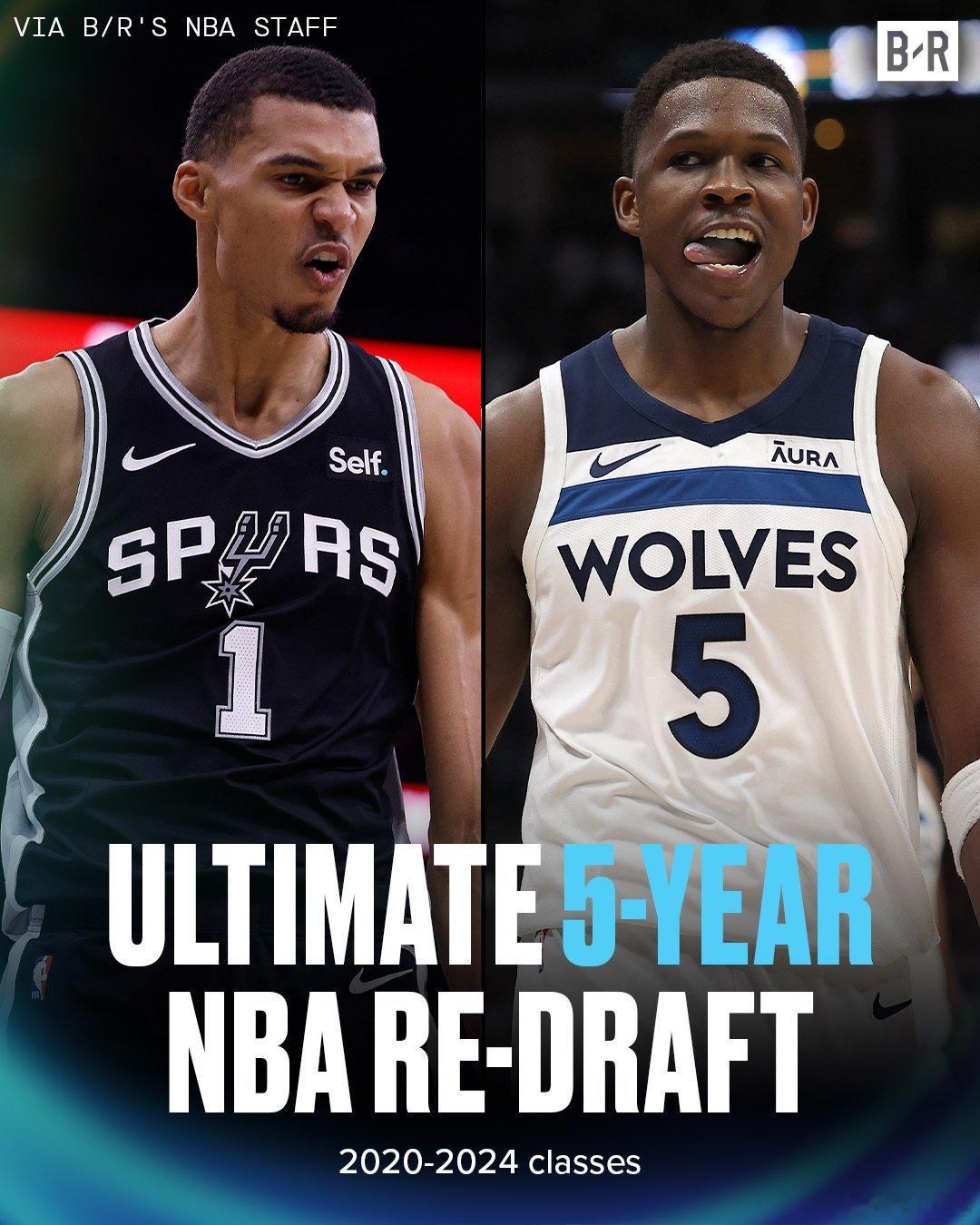 最近5年的重选盛宴B/R NBA专家团队给近五届(2020至2024届)选秀球员为人才库(含同期落选球员),展开了一场联盟重建模拟选秀。先明确几项基本规则:· 球队白手起家,核心命题是:此刻启程,你会选择以哪位球员为建队基石?· 球队顺位根据2020-21赛季至2024-25赛季的实际战绩倒序排列🏀 NBA 5 年重选名单 (2020-2024 届) 1. 活塞队: 维克托·文班亚马 - 原 2023 状元 2. 奇才队: 凯德·坎宁安 - 原 2021 状元 3. 黄蜂队: 泰瑞斯·哈利伯顿 - 原 2020 第 12 顺位 4. 马刺队: 安东尼·爱德华兹 - 原 2020 状元 5. 火箭队: 埃文·莫布利 - 原 2021 探花 6. 开拓者队: 泰瑞斯·马克西 - 原 2020 第 21 顺位 7. 魔术队: 阿尔佩伦·申京 - 原 2021 第 16 顺位 8. 猛龙队: 杰伦·威廉姆斯 - 原 2022 第 12 顺位 9. 鹈鹕队: 彻特·霍姆格伦 - 原 2022 榜眼 10. 爵士队: 阿门·汤普森 - 原 2023 探花 11. 步行者队: 杰伦·约翰逊 - 原 2021 第 20 顺位 12. 国王队: 保罗·班切罗 - 原 2022 状元 13. 篮网队: 斯科蒂·巴恩斯 - 原 2021 榜眼 14. 公牛队: 弗朗茨·瓦格纳 - 原 2021 第 8 顺位 15. 老鹰队: 奥斯汀·里夫斯 - 原 2021 落选秀 16. 雷霆队: 戴斯蒙德·贝恩 - 原 2020 第 30 顺位 17. 湖人队: 拉梅洛·鲍尔 - 原 2020 探花 18. 森林狼队: 杰伦·杜伦 - 原 2022 第 13 顺位 19. 热火队: 德尼·阿夫迪亚 - 原 2020 第 9 顺位 20. 灰熊队: 乔什·吉迪 - 原 2021 第 6 顺位 21. 独行侠队: 特雷·墨菲 - 原 2021 第 17 顺位 22. 76人队: 里德·谢泼德 - 原 2024 探花 23. 尼克斯队: 杰伦·萨格斯 - 原 2021 第 5 顺位 24. 骑士队: 佩顿·普里查德 - 原 2020 第 26 顺位 25. 勇士队: 斯蒂芬·卡斯尔 - 原 2024 第4 26. 快船队: 杰登·麦克丹尼尔斯 - 原 2020 第 28 顺位 27. 太阳队: 谢登·夏普 - 原 2022 第 7 顺位 28. 雄鹿队: 亚历克斯·萨尔 - 原 2024 榜眼 29. 掘金队: 贾巴里·史密斯 - 原 2022 探花 30. 凯尔特人队: 奥涅卡·奥孔古 - 原 2020 第 6 顺位