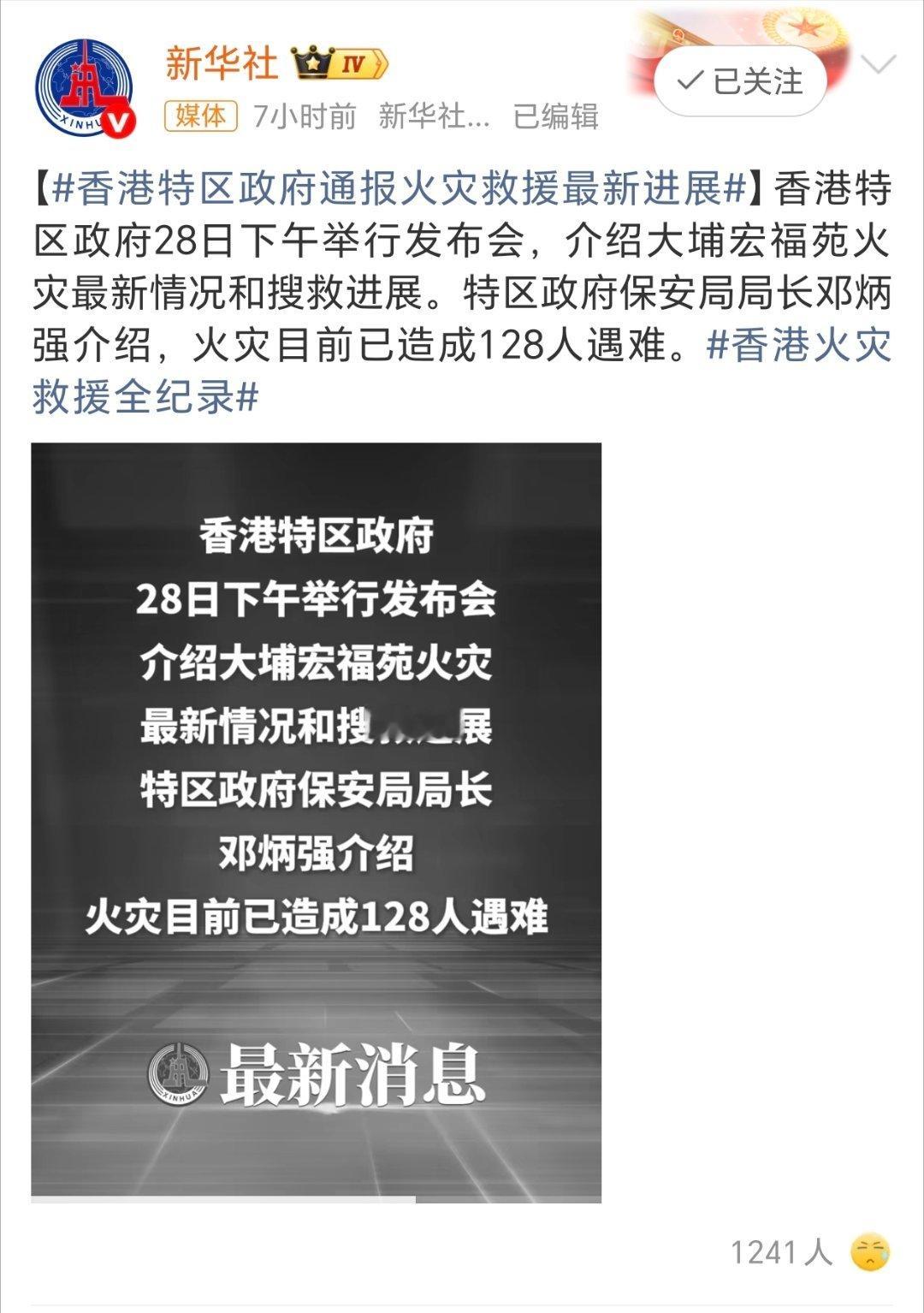 香港大埔火灾已致128人遇难真的很不喜欢看到这种的数字,希望别再增加了赶紧一切都好起来吧
