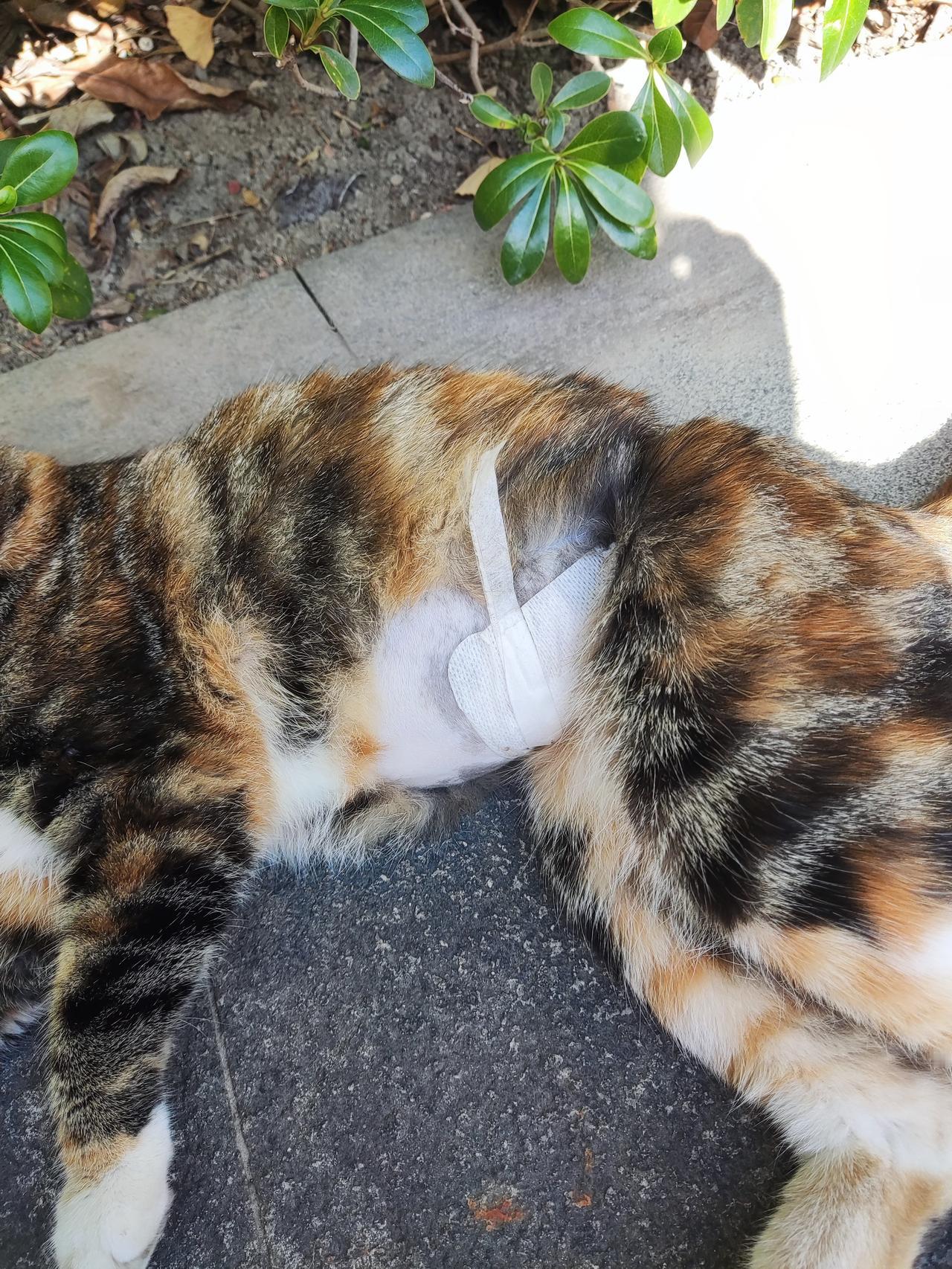 想问大家,流浪小母猫绝育后,是先养几天再放归自然,还是绝育完直接放生呢? 昨天,我把小区里的流浪猫带去做绝育手术了,当天只抓到一只,那就先给这一只绝育吧。 原本我以为母猫绝育后怎么也得养个一两天,可宠物医院的医生说不用,手术做完,等小母猫苏醒后就可以直接放生。 今天我去看它,发现它肚子有些渗血,走路也迟缓了些,不过总体状况还行,能吃能喝,还变得格外黏我。 救助流浪猫真是任重道远啊!