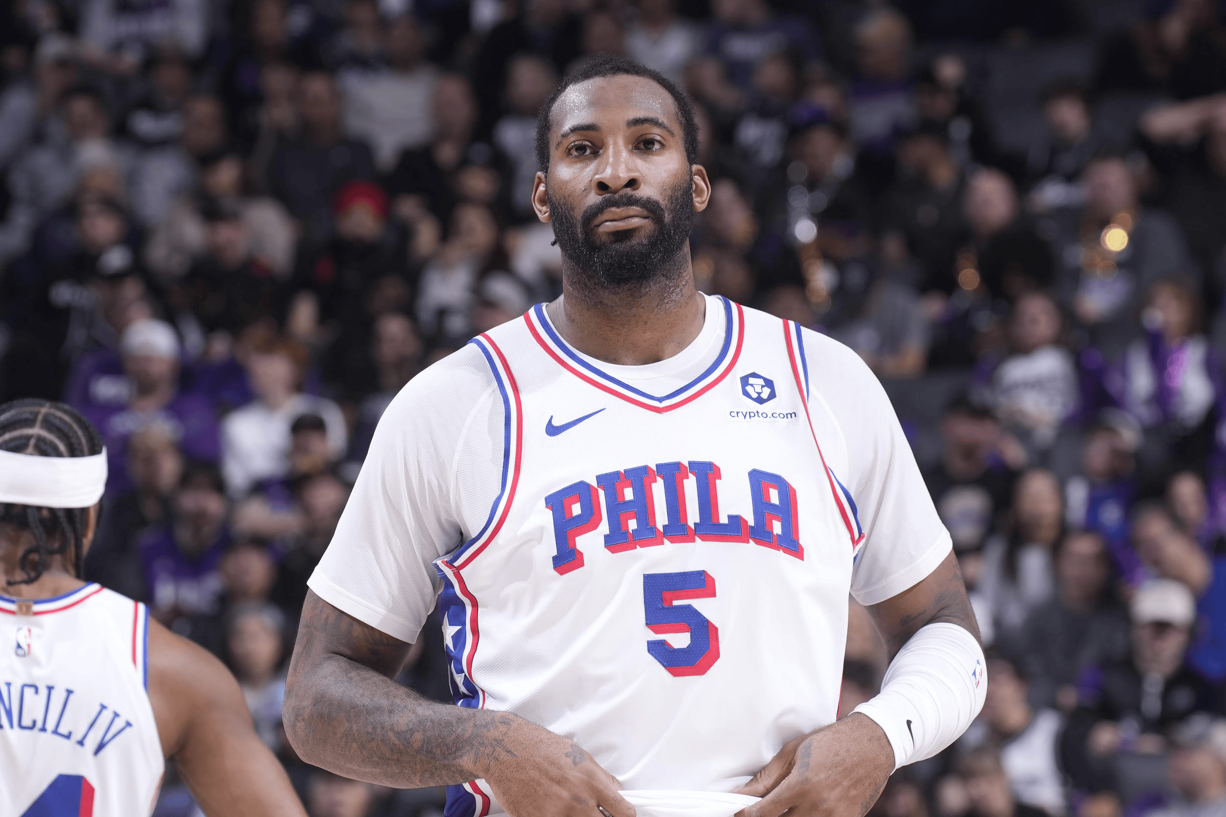 第二节比赛,中锋安德烈-德拉蒙德争抢篮板脚部意外受伤,并在队友搀扶下坐在轮椅上,随后坐着轮子缓缓离开球场。