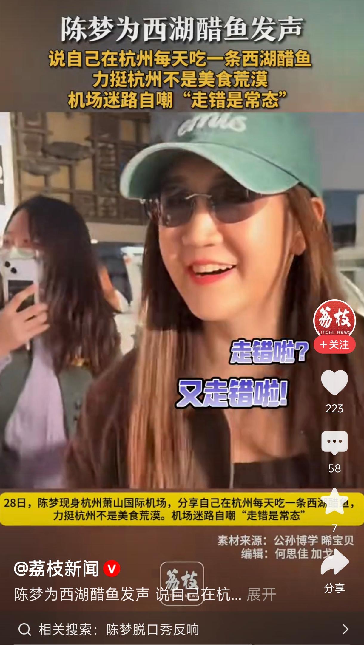 陈梦在杭州每天吃一条西湖醋鱼 根据最新报道,乒乓球运动员陈梦近日在杭州萧山国际机场现身,分享了她在杭州的生活趣事。她透露自己每天都在品尝西湖醋鱼,表达了对杭州美食的喜爱和支持,强调杭州并非美食荒漠。同时,陈梦还自嘲在机场迷路,表示“走错是常态”,展现了她轻松幽默的个性。 这番言论不仅展现了她对杭州的喜爱,也让粉丝们感受到运动员平易近人的一面。西湖醋鱼作为杭州的代表性美食,受到陈梦的推崇,也为杭州的美食文化增添了一份热情与认可。陈梦世锦赛 有谁喜欢国乒女神陈梦的?