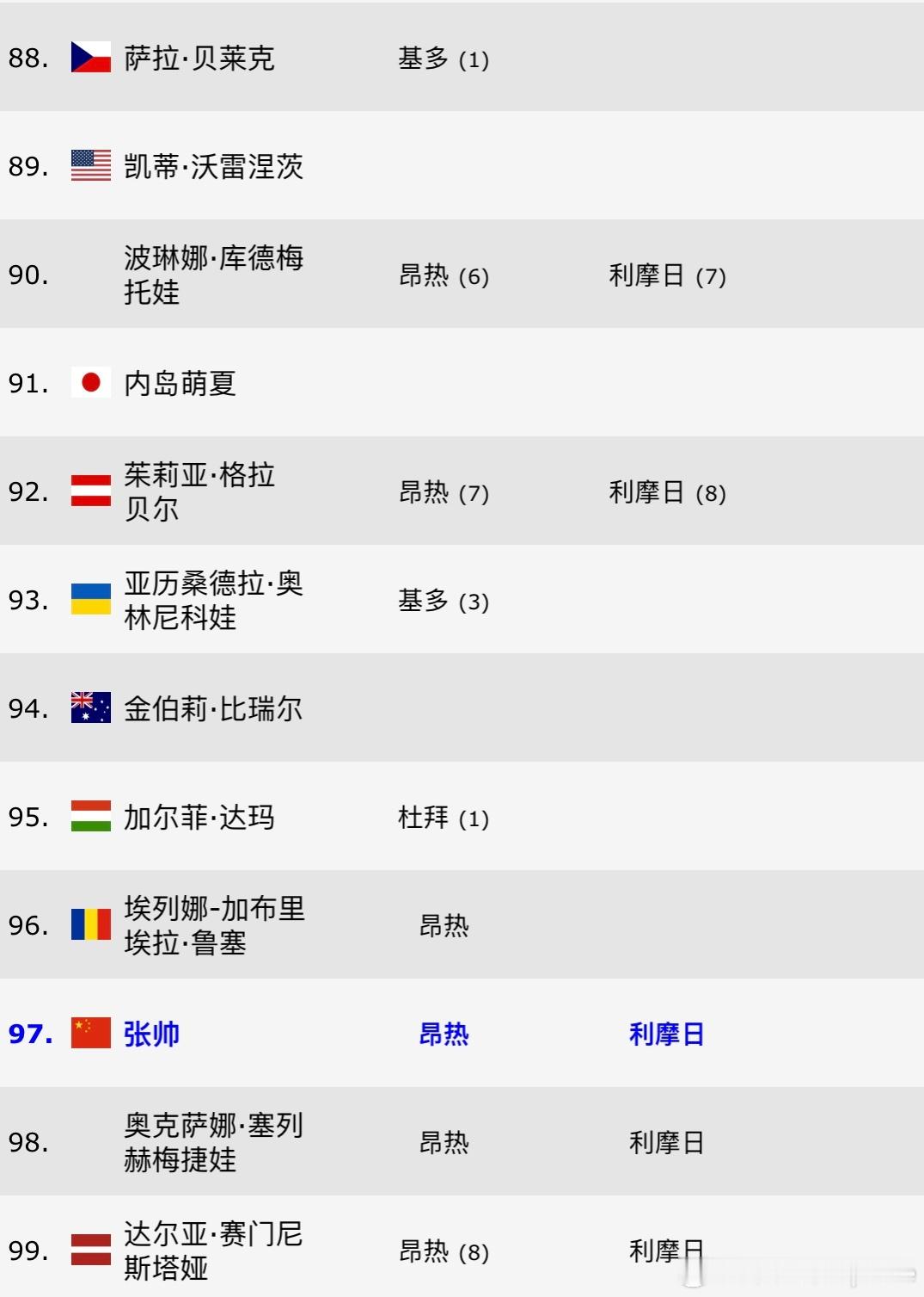 澳网2026 关于澳网正选名额昨天我发微博说张帅一只脚迈入澳网,评论区有人来说 我不专业,有博主发入围了但如果我说入围了,肯定还会有人说 还是要夺冠才稳妥确实今年年底的比赛多,所以导致最大的变量就是【理论可能】有很多人会超分。九江打完积分就来到770的尤万 就休息了,下周一的排名很可能就变成了101 下周大家将会并分三路 🇫🇷WTA125、 🇨🇴基多WTA125、 🇦🇪迪拜W100而且 最大的变数就在🇨🇴基多WTA125 ,目前即时排名105🇭🇺乌尔瓦迪、106🇸🇮埃尔雅维奇、107🇪🇬谢里芙还都在🇦🇷布宜诺斯艾利斯 的签表里, 而且下周基多WTA125 种子还都是这些入围圈子竞争。。。125 四强 49分 亚军81 冠军 125 。 大家都有超上来的理论可能,这些人也都有在这站拿冠军的能力再加上报名迪拜、昂热的 这个排名段附近的球员拿到 50分左右的成绩也都不难不过毫无疑问的是张帅 入围澳网占据主动权,后面球员才是需要一边拿分 、一边祈祷少点SR!张帅今年第三次晋级单打决赛网球talking大会